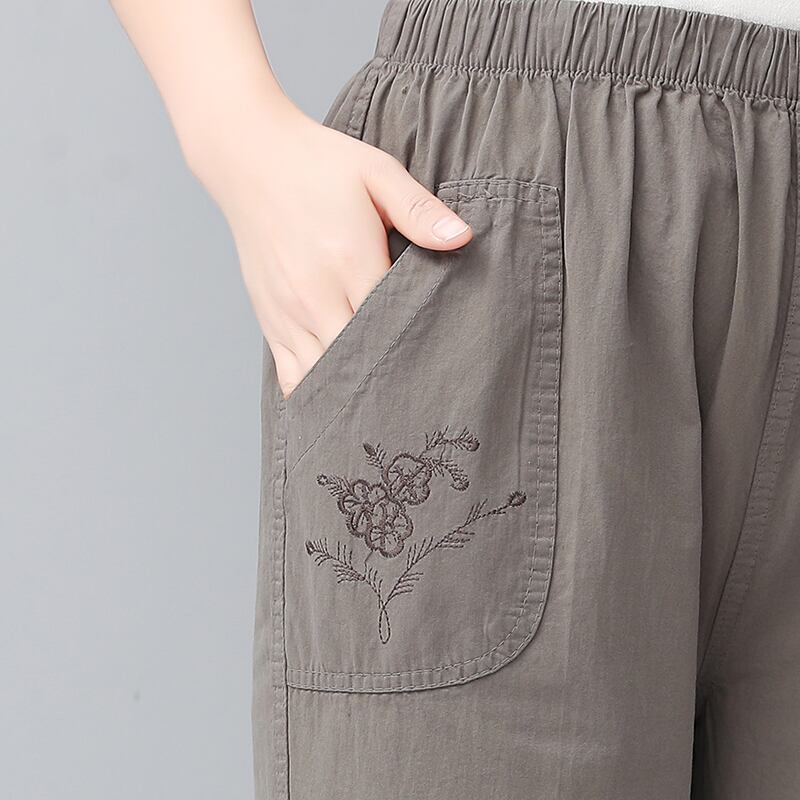 ボトムス パンツ ストレートパンツ 9分丈 ストレート 刺繍 ポケット ウエストゴム シンプル カジュアル レトロ 無地 春 夏 20代 30代 40代 50代 60代 レディース 女性用 ママ お出かけ 休日 旅行 着回し 普段使い 楽ちん XL 2XL 白 ホワイト 黒 ブラック 赤 レッド ライトグレー