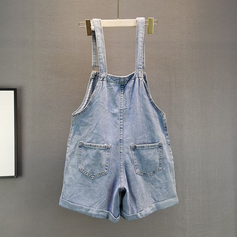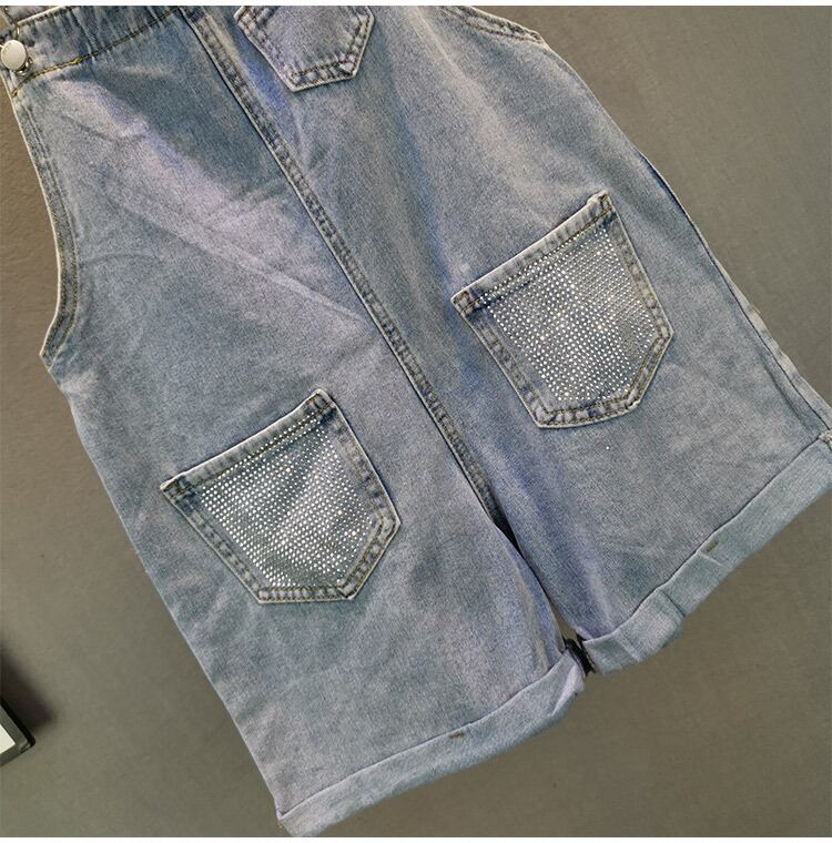 デニムサロペットのショートパンツ