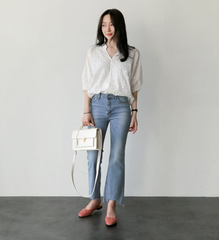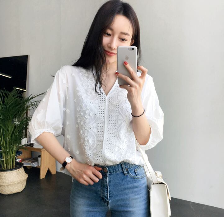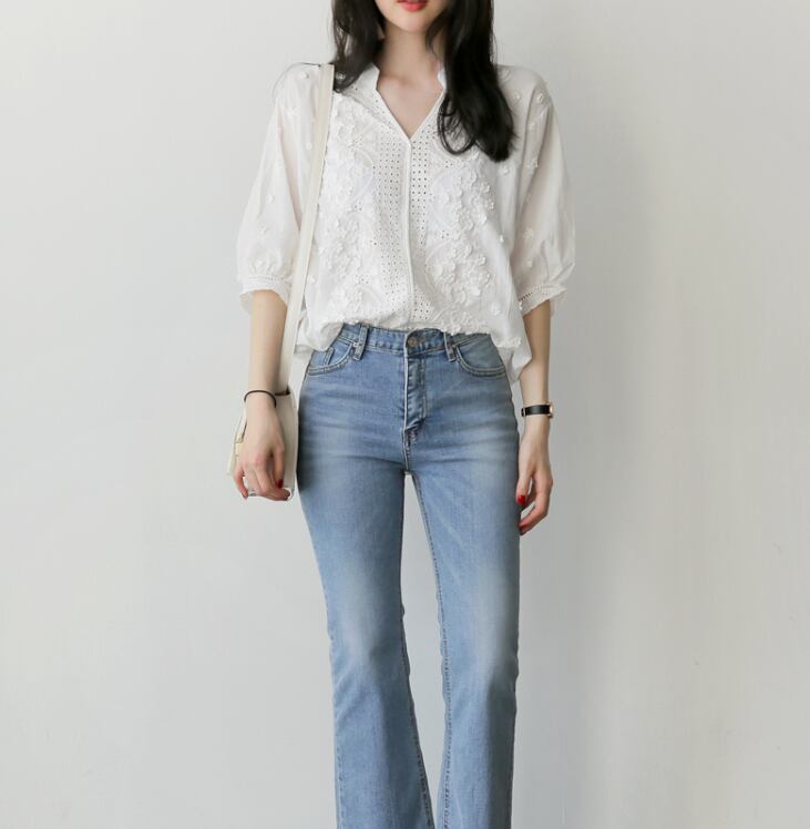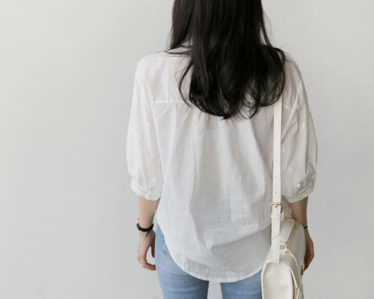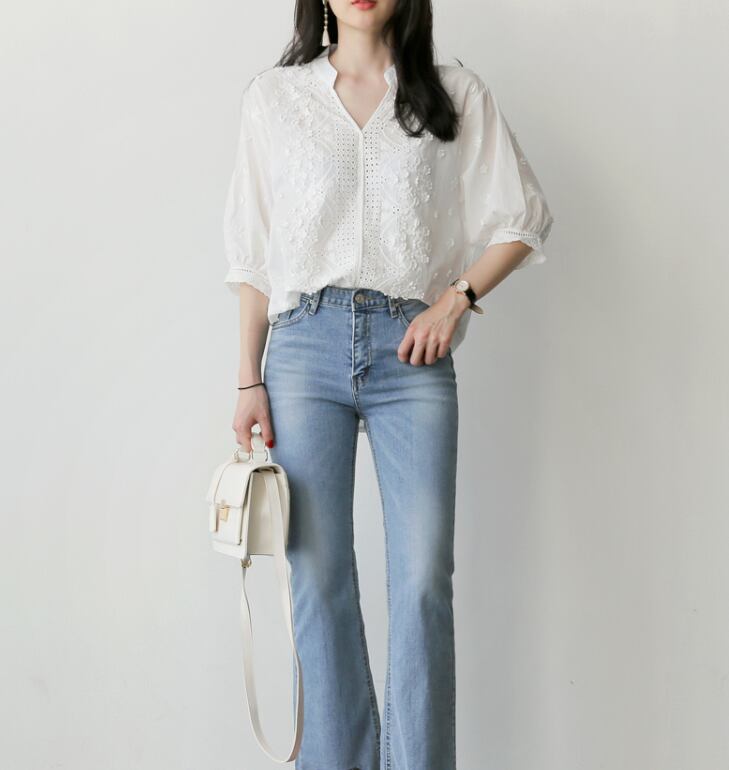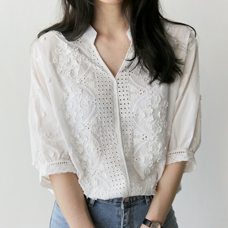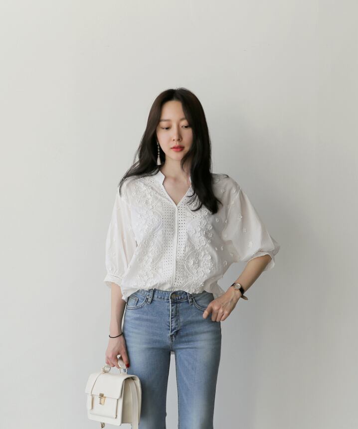 レースと刺繍を合わせたシンプルだけど華やかさのあるブラウス。