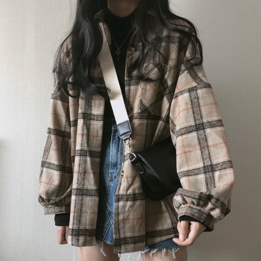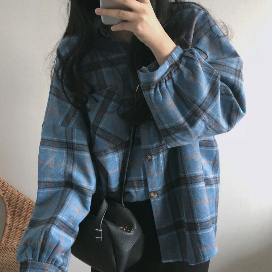オーバーサイズチェック柄シャツ トップス シャツ ブラウス 袖あり 長袖 ボリューム袖 襟付き 前開き かわいい 大人可愛い きれいめ シンプル カジュアル 大人 おしゃれ お洒落 レトロ 大人可愛い 大人女子 こなれ感 キュート ガーリー 個性的 エレガント 主役級 存在感 抜け感 柄 チェック柄 秋 冬 10代 20代 30代 レディース 学生 通学 デート お出かけ 女子会 休日 着回し 普段使い 重ね着 韓国系 オルチャン 色展開 青 ブルー カーキ
