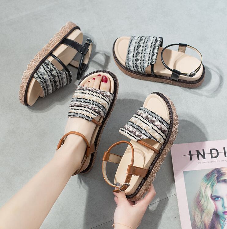 エスニック柄サンダル シューズ 靴 サンダル ヒールパンプス レディースサンダル フラット ぺたんこ ペタンコ ラウンドトゥ かわいい 大人可愛い きれいめ シンプル カジュアル 大人 上品 おしゃれ お洒落 大人っぽい 個性的 クール モダン 主役級 存在感 抜け感 エスニック エキゾチック 柄 春 夏 10代 20代 30代 レディース 学生 通学 デート お出かけ 女子会 休日 リゾート 旅行 海 プール デイリー 普段使い 韓国系 オルチャン サイズ 22.5cm 23.0cm 23.5cm