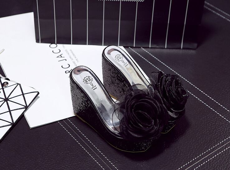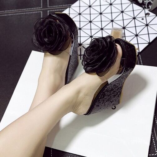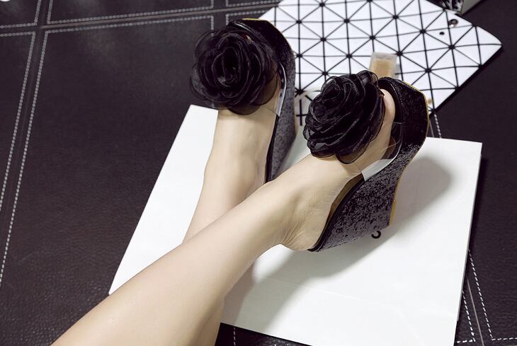 大きなフラワーモチーフをあしらいインパクトある一足に仕上げました。