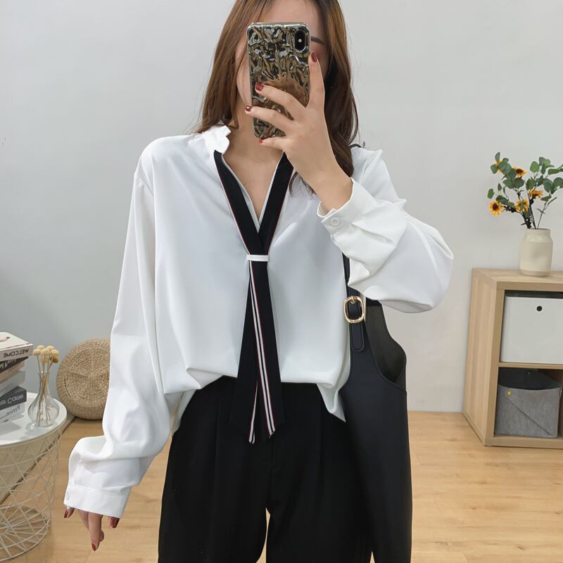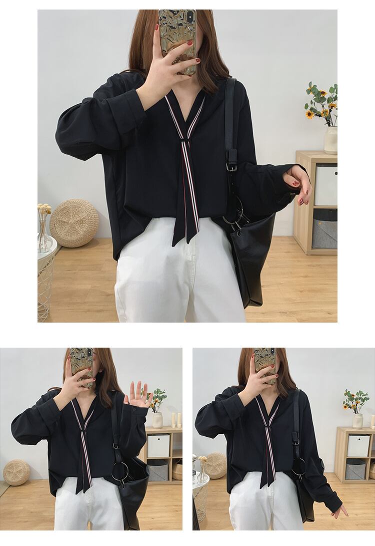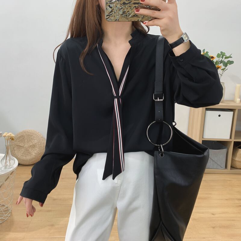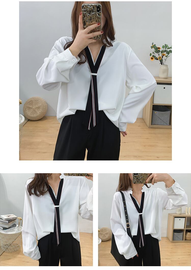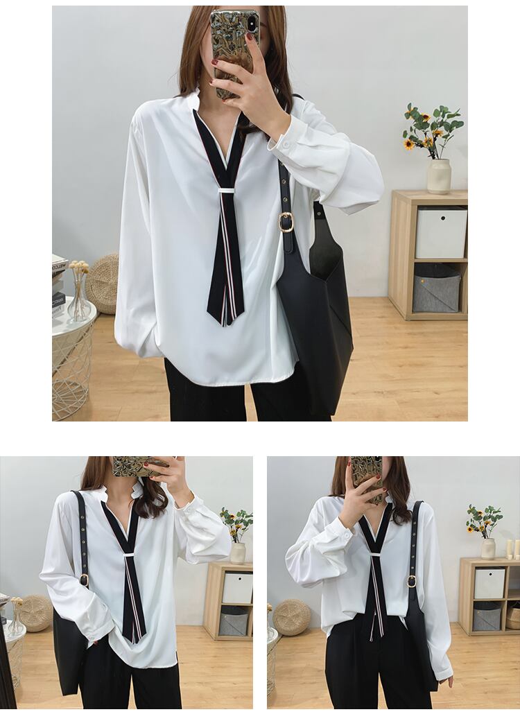 リボンとして使えるネクタイ付きのシャツ