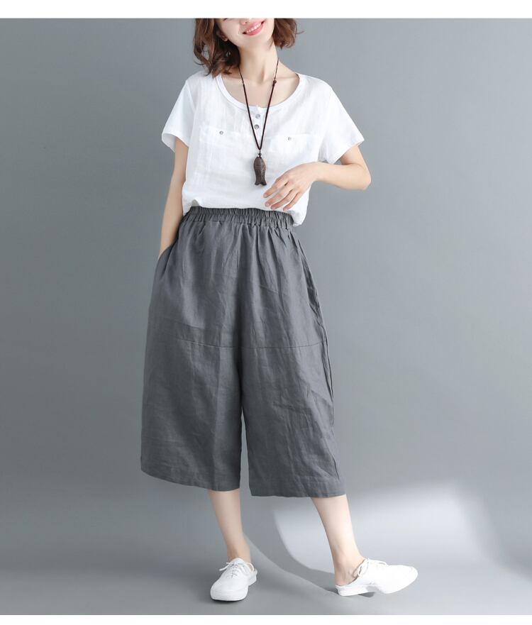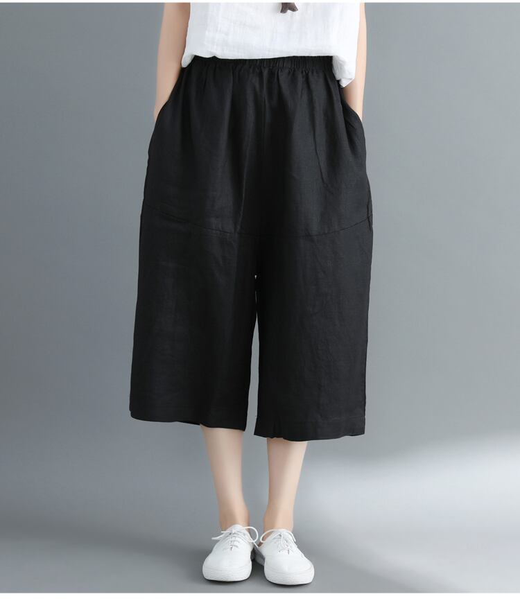 ハーフパンツ ボトムス パンツ 膝下 ミディアム丈 ワイド ポケット ウエストゴム ポリエステル シンプル カジュアル 無地 春 夏 10代 20代 30代 40代 50代 60代 レディース 女性用 ママ お出かけ 休日 リゾート 旅行 海 着回し 普段使い 楽ちん 体型カバー M L XL 2XL ゆったり 黒 ブラック 灰色 グレー アプリコット