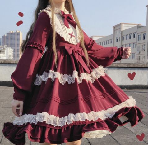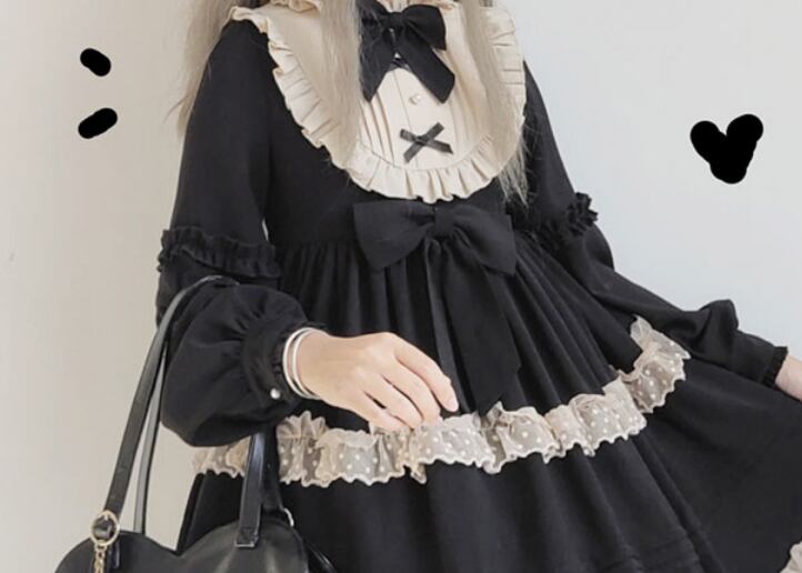 フリルドーリーワンピース 長袖 袖あり 膝丈 リボン 爽やか フリル可愛い きれいめ シンプル カジュアル 大人 上品 おしゃれ かっこいい レトロ アジアン 大人可愛い 大人女子 こなれ感 ラブリー キュート 個性的 存在感 無地 春 秋 冬 10代 20代 30代 40代 50代 レディース ママ 女の子 オフィス ビジネス OL 通勤 学生 通学 デート お出かけ 女子会 休日 リゾート 旅行 着回し コーデ スタイル モテ サイズ