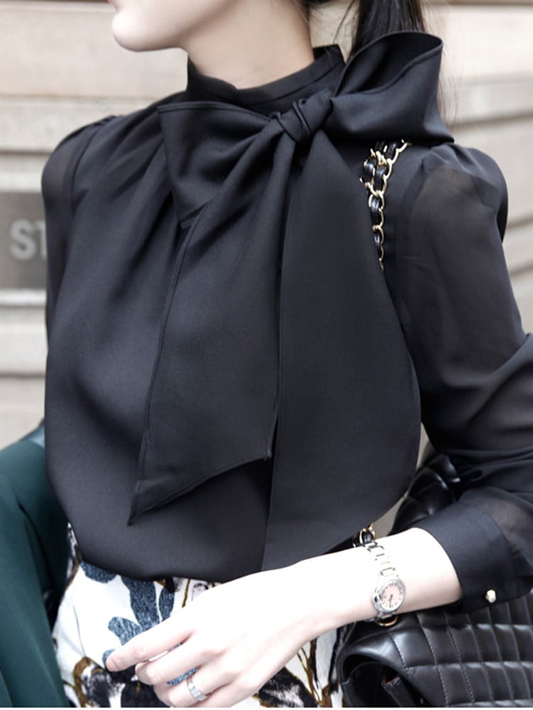 ボウタイブラウス トップス シャツ ブラウス 袖あり 長袖 ハイネック シフォン リボン ポリエステル かわいい 大人可愛い きれいめ シンプル カジュアル 大人 おしゃれ お洒落 レトロ 大人可愛い 大人女子 こなれ感 ラブリー キュート ガーリー 個性的 主役級 存在感 抜け感 無地 春 秋 10代 20代 30代 レディース OL 通勤 学生 通学 デート お出かけ 女子会 休日 着回し 普段使い 重ね着 サイズ S M L XL 色展開 白 ホワイト 黒 ブラック