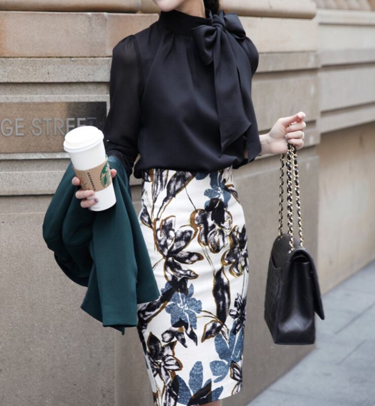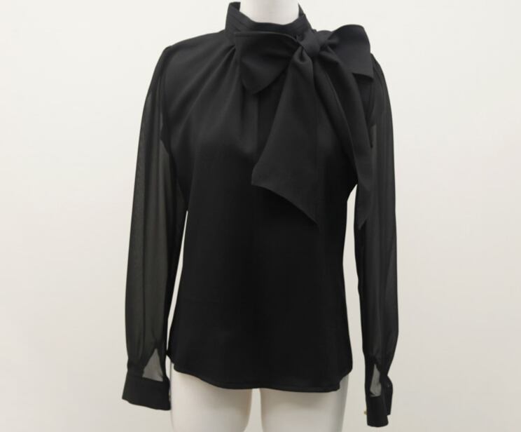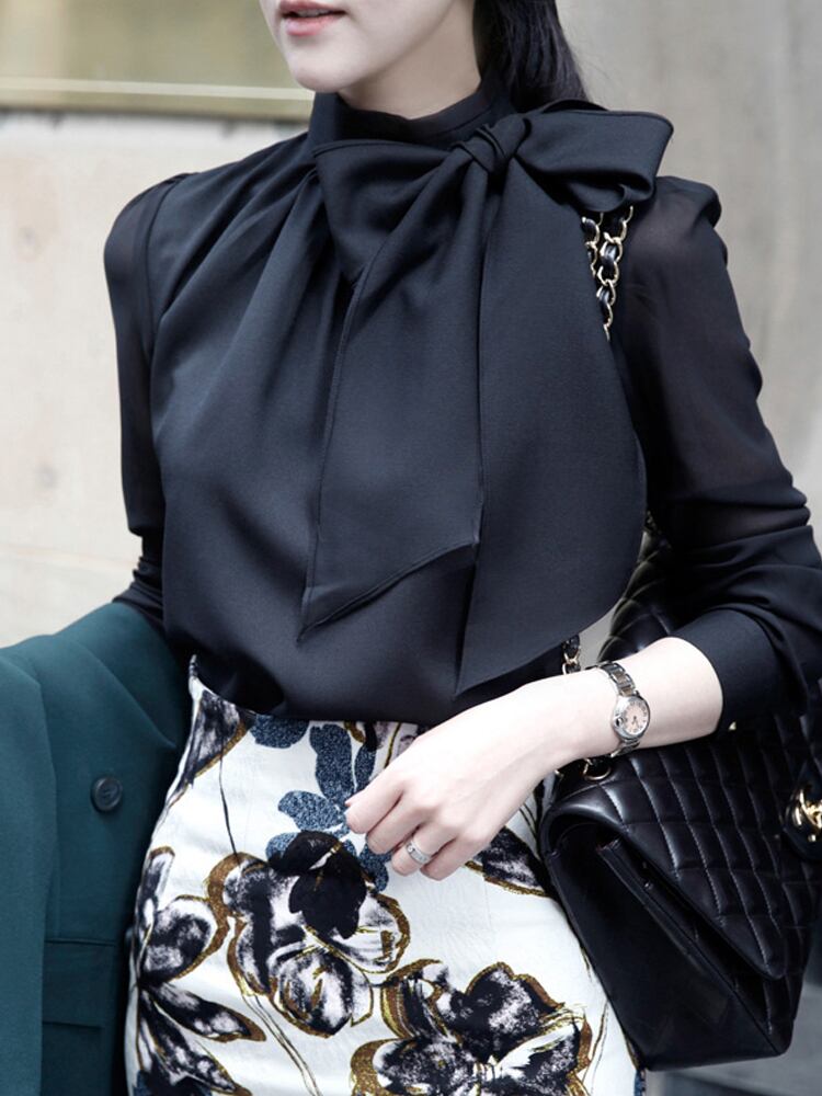 大きなリボンがフェミニンな雰囲気のブラウス。