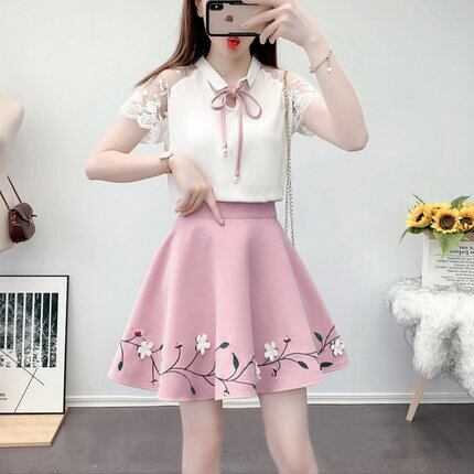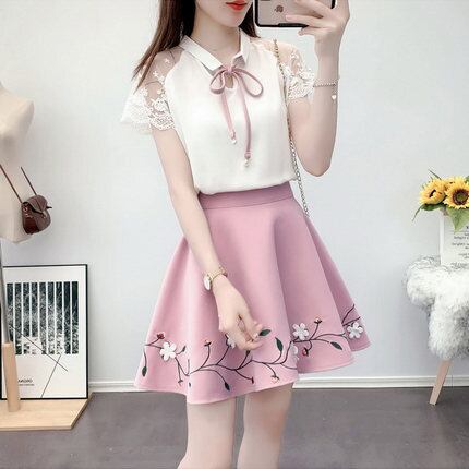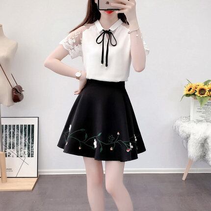 セットアップ シャツ ブラウス ミニスカート フレアスカート ミニ ミニ丈 袖あり 半袖 襟付き レース リボン ハイウエスト 透け感 シースルー ポリエステル 上下セット 2点セット ツーピース かわいい 大人可愛い きれいめ シンプル カジュアル 大人 おしゃれ お洒落 レトロ 大人可愛い 大人女子 こなれ感 ラブリー キュート ガーリー 個性的 主役級 存在感 抜け感 無地 春 夏 10代 20代 30代 レディース 学生 通学 デート お出かけ 女子会 休日 着回し 普段使い 重ね着