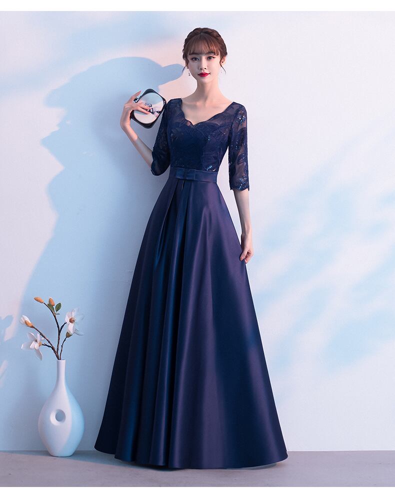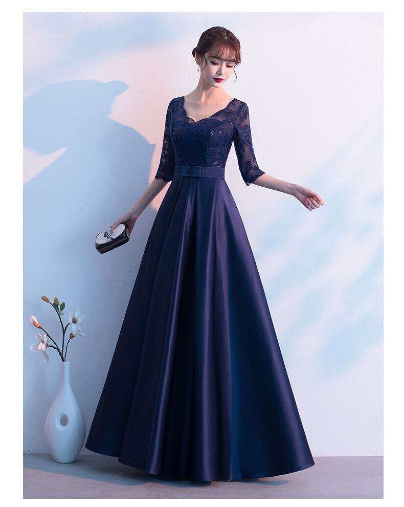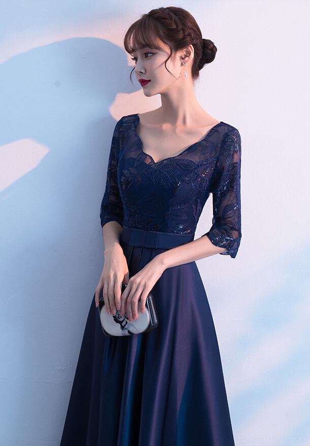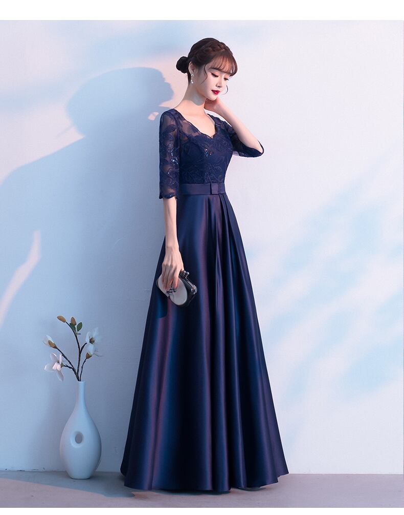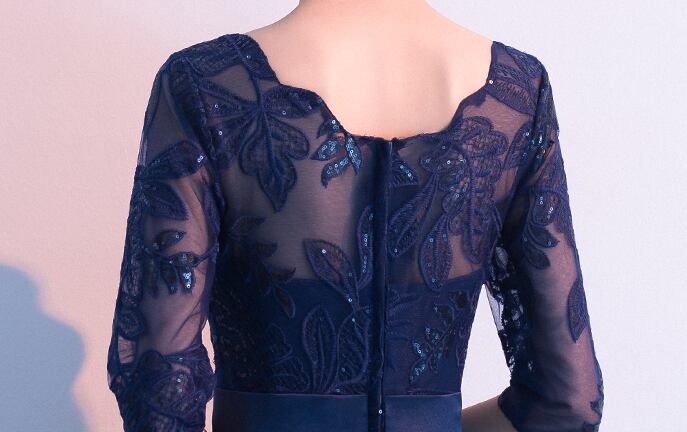 大きく開いたVネックとシースルーの七分袖でエレガンスな女性に演出します。