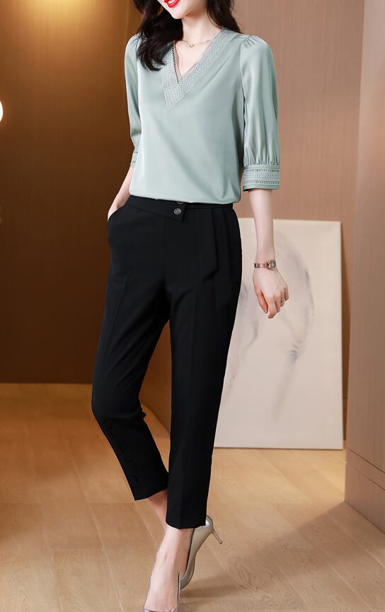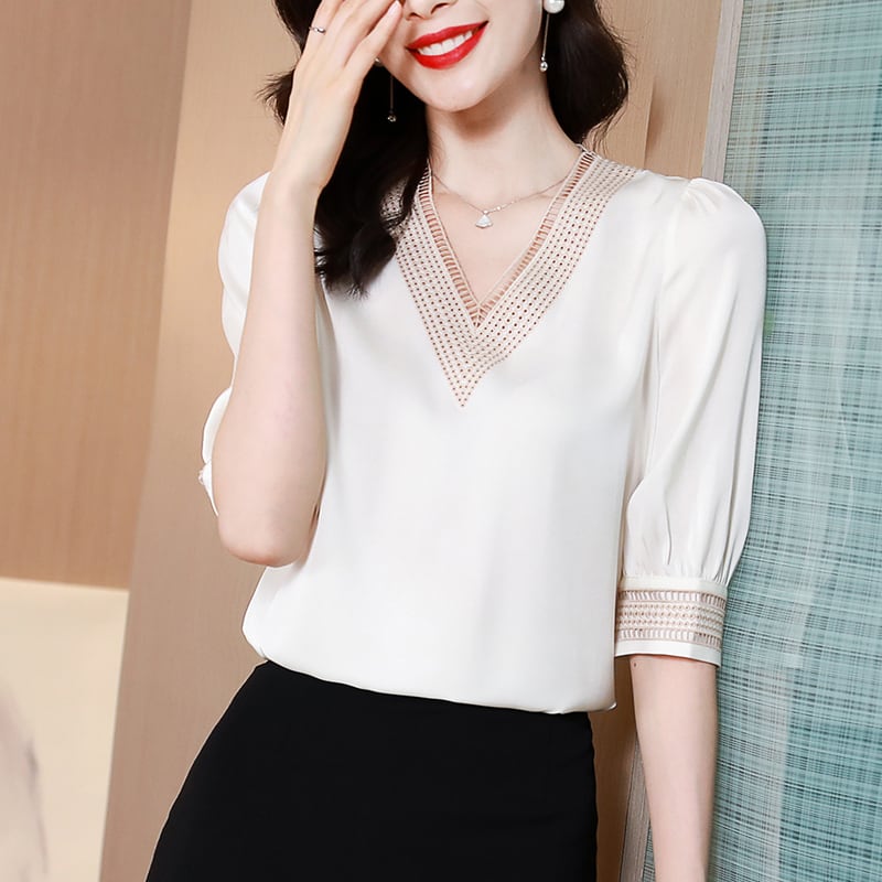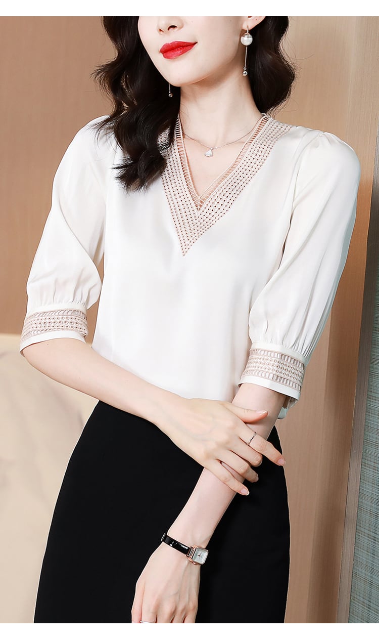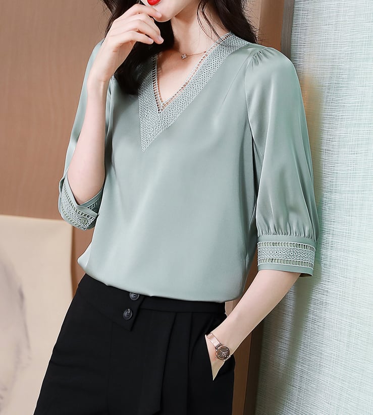 Ⅴネックブラウス トップス シャツ ブラウス 袖あり 5分袖 五分袖 Vネック 刺繍 かわいい 大人可愛い きれいめ シンプル カジュアル 大人 おしゃれ お洒落 レトロ 大人可愛い 大人女子 こなれ感 キュート ガーリー 個性的 主役級 存在感 抜け感 無地 春 夏 秋 10代 20代 30代 レディース OL 通勤 学生 通学 デート お出かけ 女子会 休日 着回し 普段使い 重ね着 サイズ S M L XL 2XL 色展開 青 ブルー 緑 グリーン アプリコット