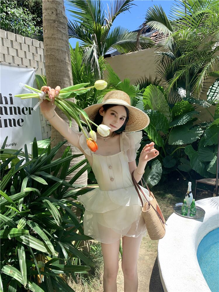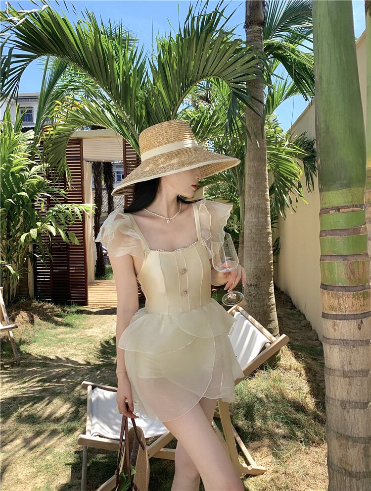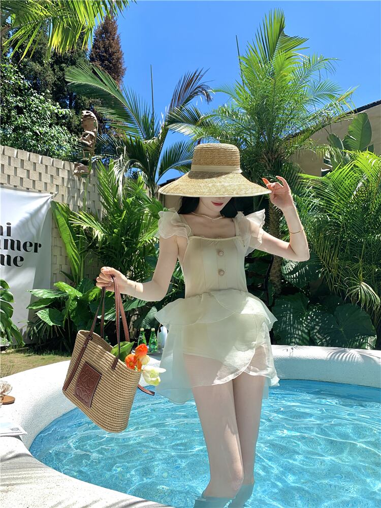 花びらデザインのクラッシックで上品な水着。