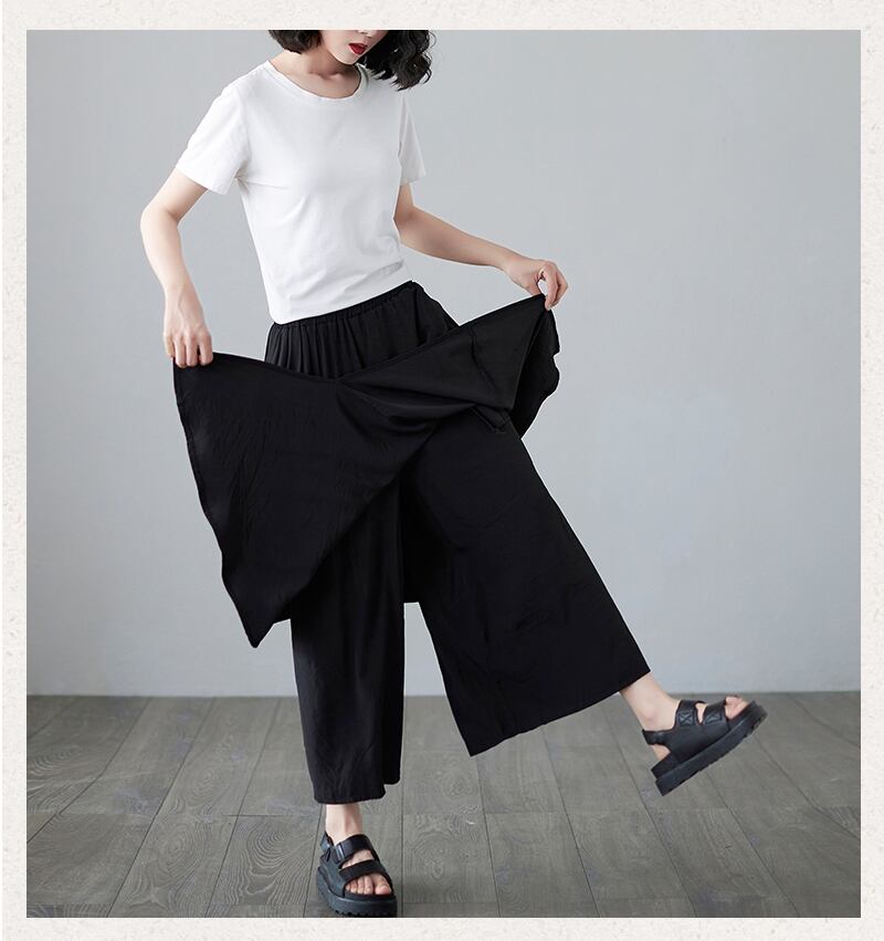 レイヤード ボトムス パンツ ワイドパンツ 7分丈 ワイド アシンメトリー ポケット ハイウエスト ウエストゴム 伸縮性 無地 春 夏 10代 20代 30代 40代 レディース 女性用 お出かけ 休日 着回し 普段使い 楽ちん 体型カバー M L XL 黒 ブラック
