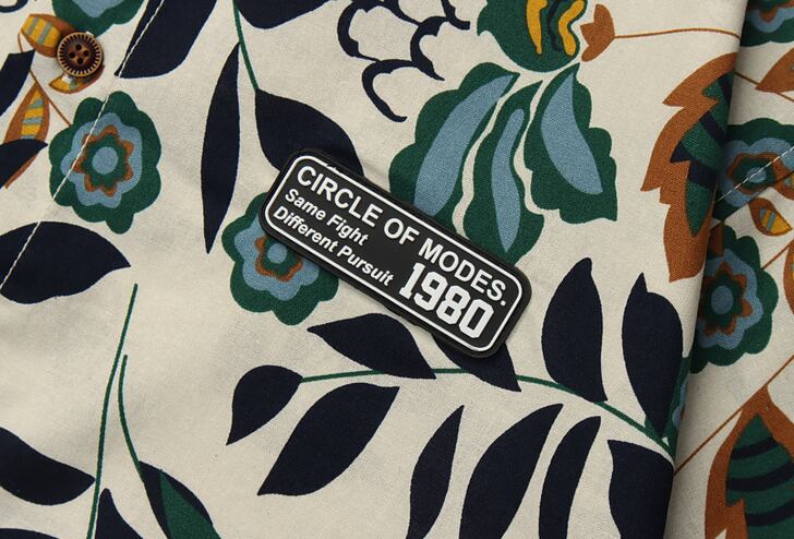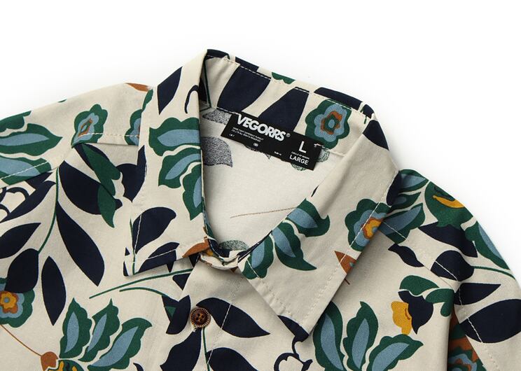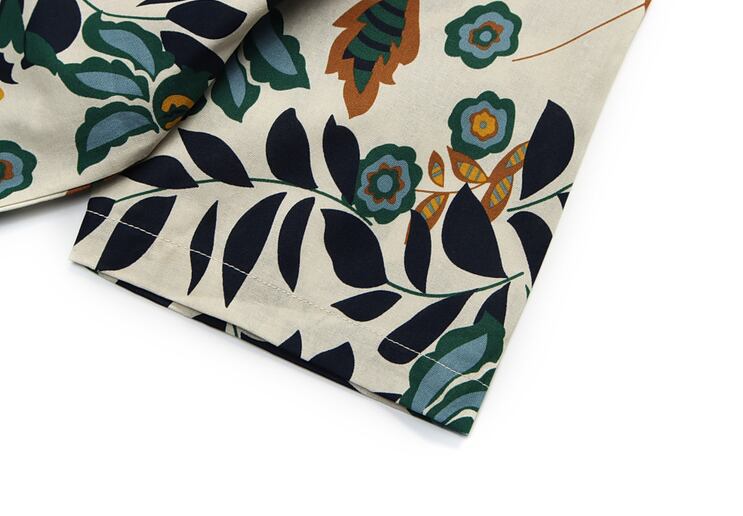南国らしい木々や葉っぱがデザインされたアロハシャツ。