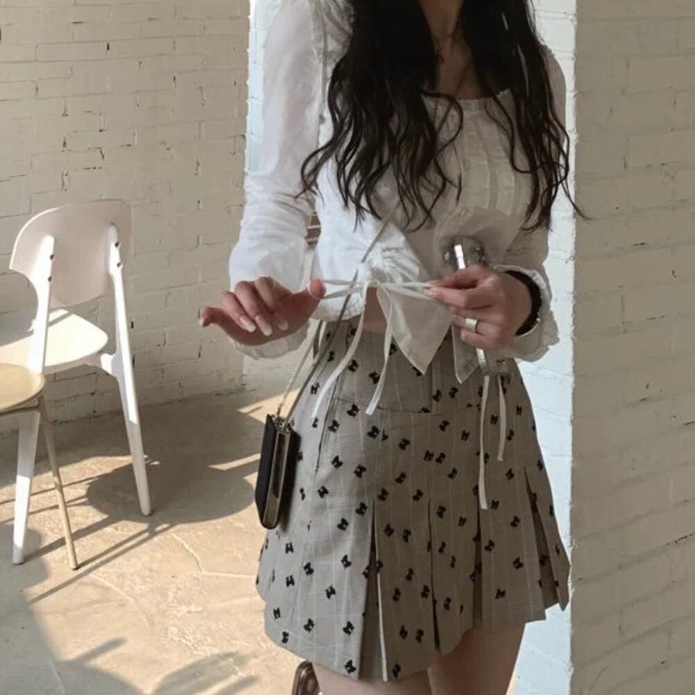 ショート丈で、トレンド感のある可愛い着こなしに。コーデにガーリーな甘さをプラス出来ますよ。Aライン・プリーツスカートと合わせた、韓国っぽコーデがおすすめです。目線を引き上げて、脚を綺麗に長く見せてくれます。