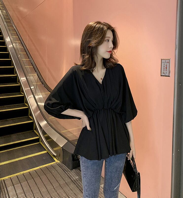 女性らしさがでるゆったりとした大人ペプラムブラウス。