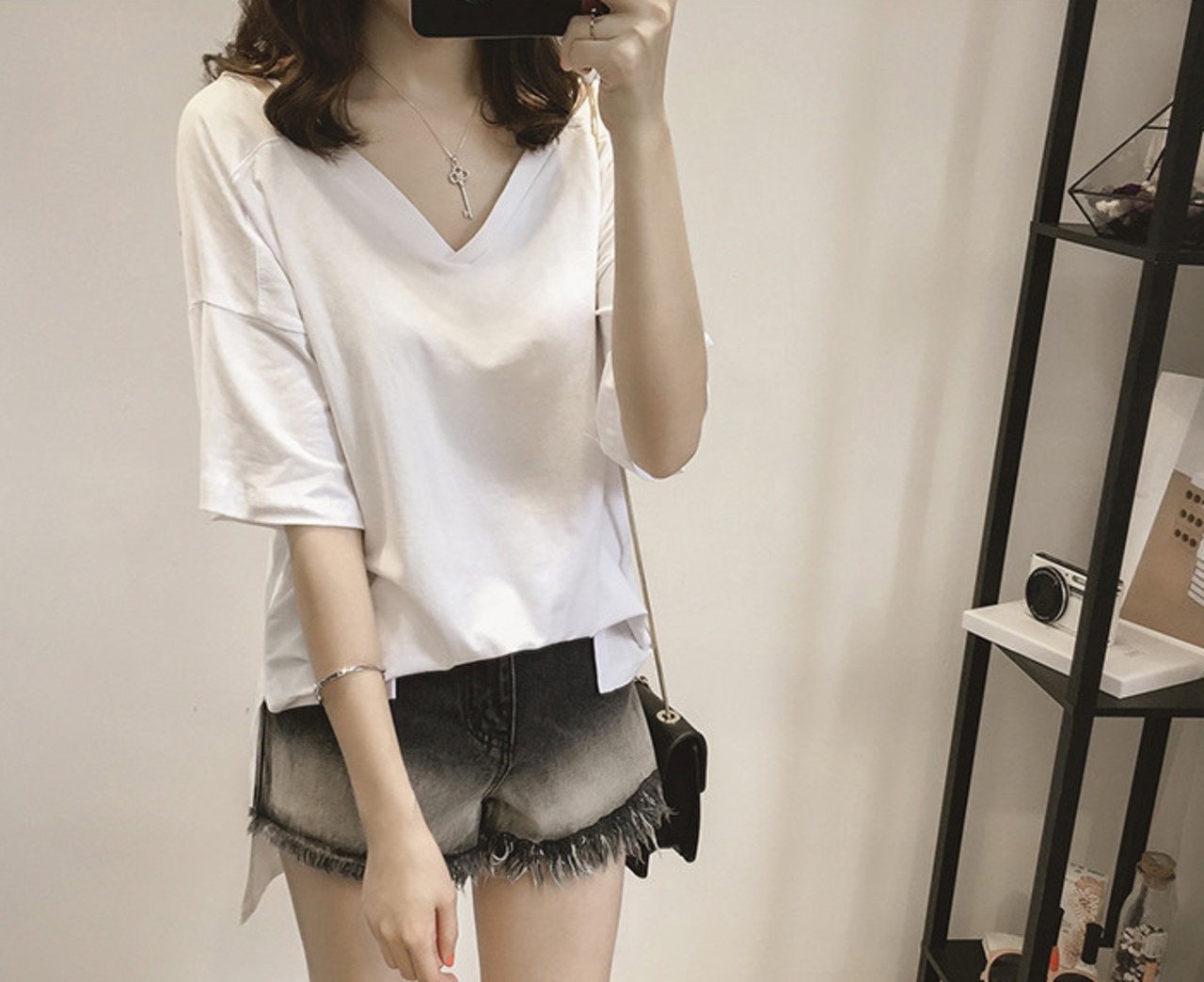 涼しげな肩あきカットソー。