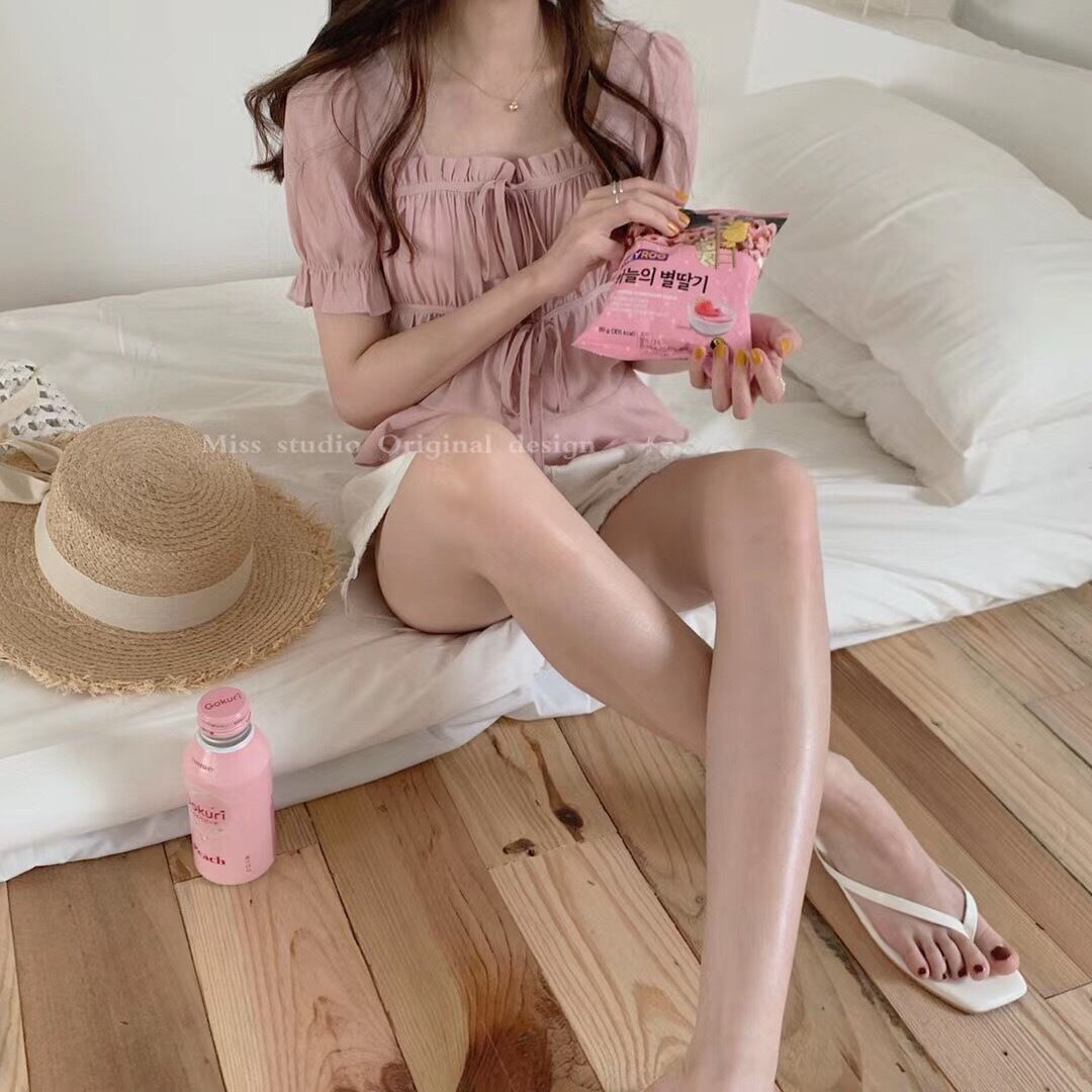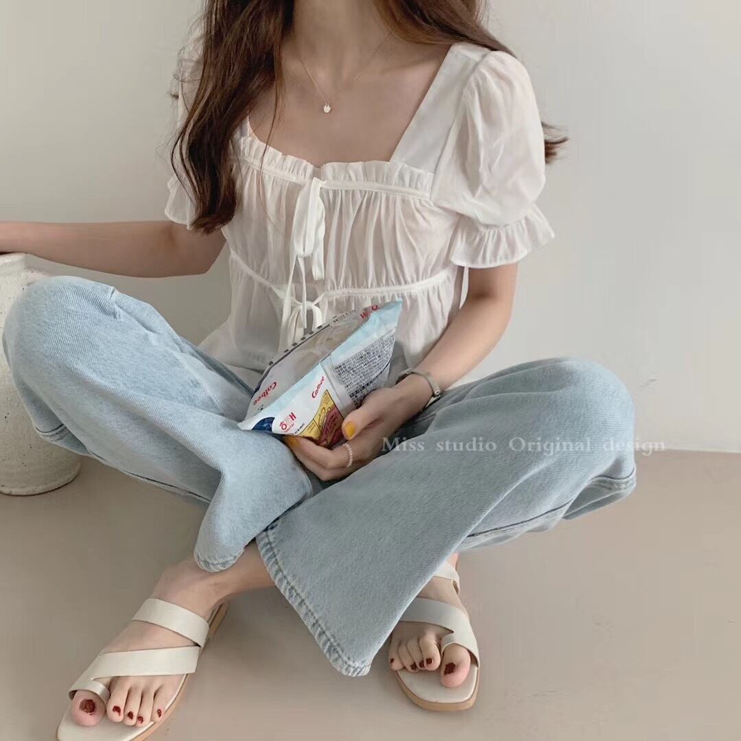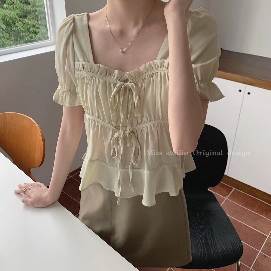 ショート丈ブラウス トップス ブラウス ショート ショート丈 袖あり 半袖 パフスリーブ スクエアネック フリル リボン かわいい 大人可愛い きれいめ シンプル カジュアル 大人 おしゃれ お洒落 レトロ 大人可愛い 大人女子 こなれ感 キュート ガーリー 個性的 主役級 存在感 抜け感 無地 春 夏 秋 10代 20代 30代 レディース OL 通勤 学生 通学 デート お出かけ 女子会 休日 着回し 普段使い 重ね着 色展開 白 ホワイト 緑 グリーン 紫 パープル ピンク