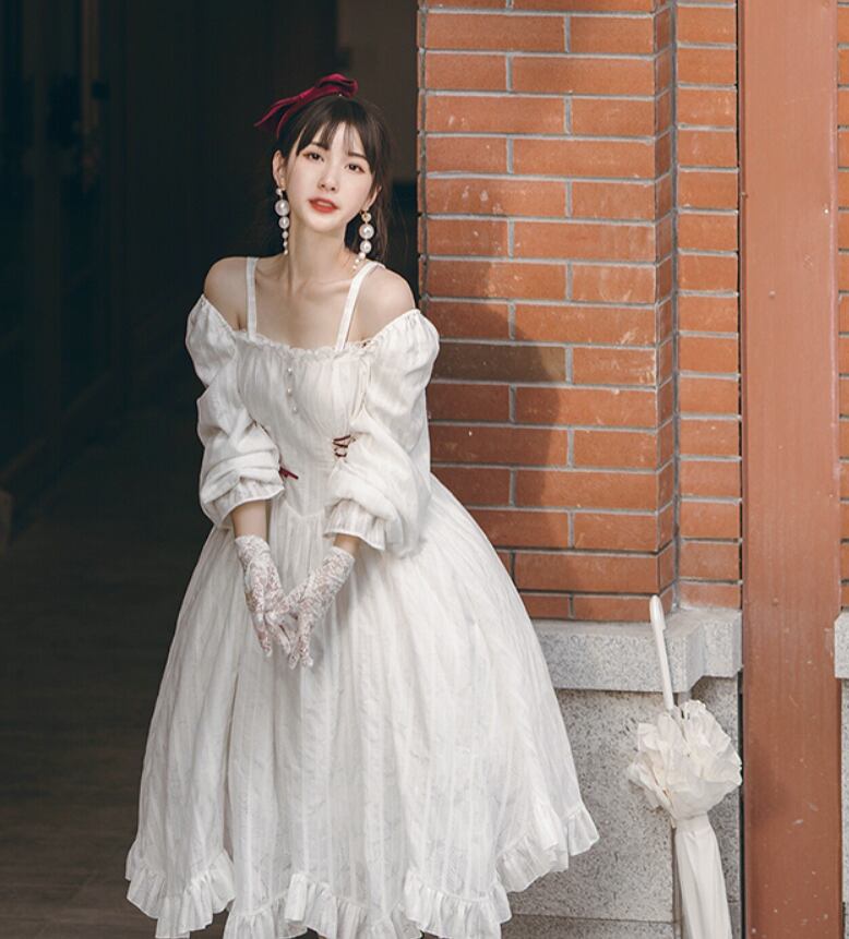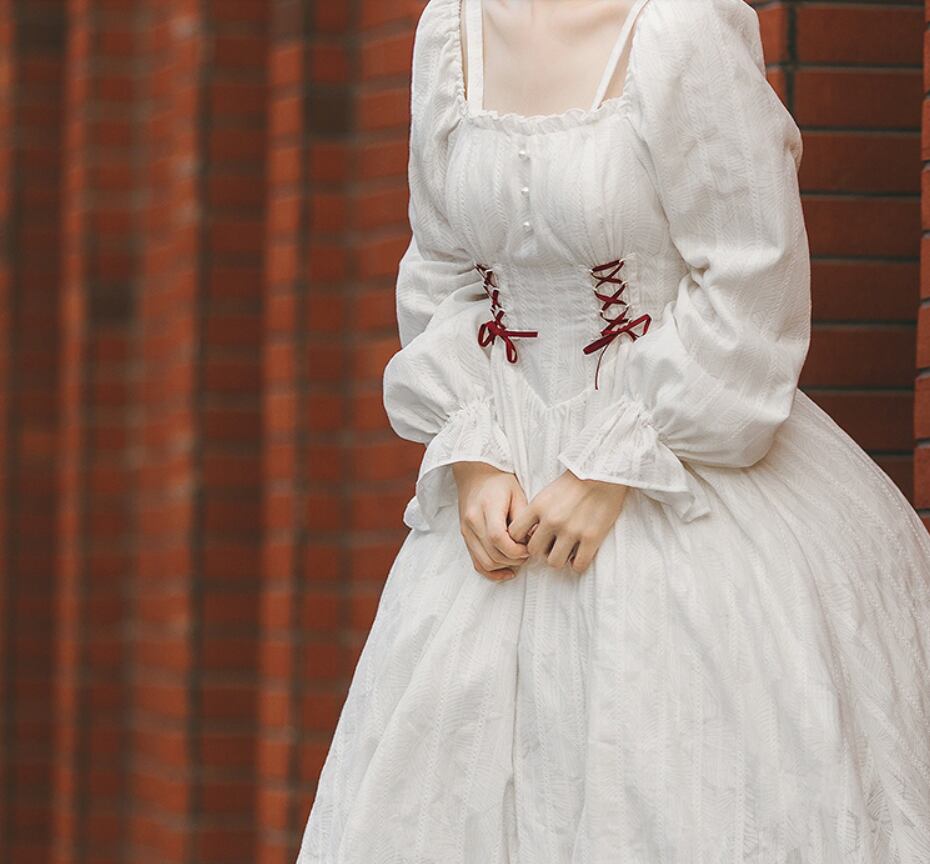 ワンピース ワンピドレス 膝丈 ひざ丈 袖あり 長袖 袖コンシャス スクエアネック オフショルダー オフショル フリル リボン ウエストマーク ハイウエスト 透け感 かわいい レトロ ラブリー キュート ガーリー 主役級 存在感 無地 春 夏 10代 20代 レディース 女性用 女の子 お出かけ 休日 イベント S M L 白 ホワイト