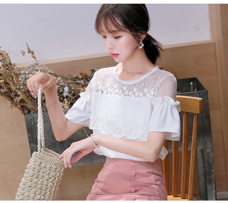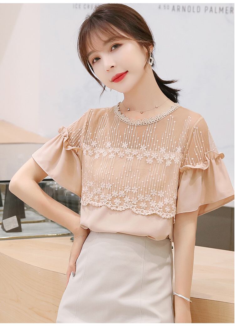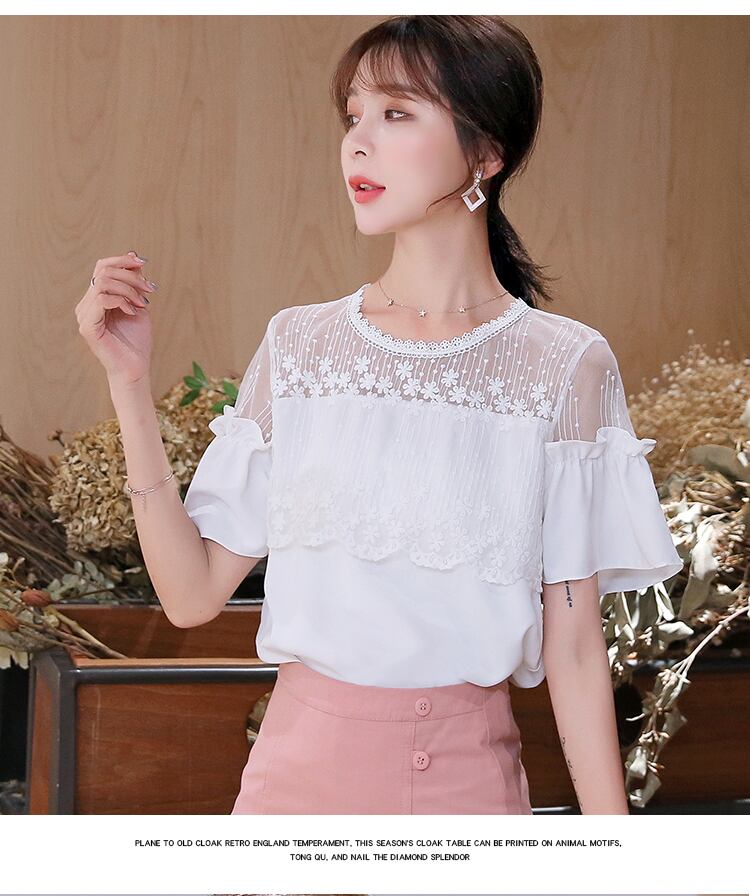 シフォンシャツレディース夏ハイエンドレーストップス半袖小さなシャツ トップス シャツ 白シャツ 白トップス ショート丈 半袖 ボリューム袖 ラウンドネック ストレート レース 大人可愛い きれいめ シンプル カジュアル 大人 おしゃれ 大人女子 ラフ ラブリー キュート 柄 夏 10代 20代 30代 レディース 女性用 オフィス OL 通勤 学生 通学 デート お出かけ 女子会 お泊まり 休日 旅行 着回し 普段使い S M L XL 2XL ホワイト アプリコット