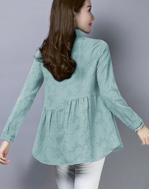 トップス シャツ ミディアム丈 袖あり 長袖 襟付き スタンドカラー Aライン ハイウエスト かわいい 大人可愛い シンプル カジュアル おしゃれ 大人女子 こなれ感 キュート ガーリー 抜け感 無地 春 秋 20代 30代 40代 レディース デート お出かけ 女子会 休日 旅行 着回し 普段使い オルチャン モテ 体系カバー トレンド サイズ M L XL 2XL 色展開 ライトブルー レッド ホワイト ディープグリーン ピンク ネイビー