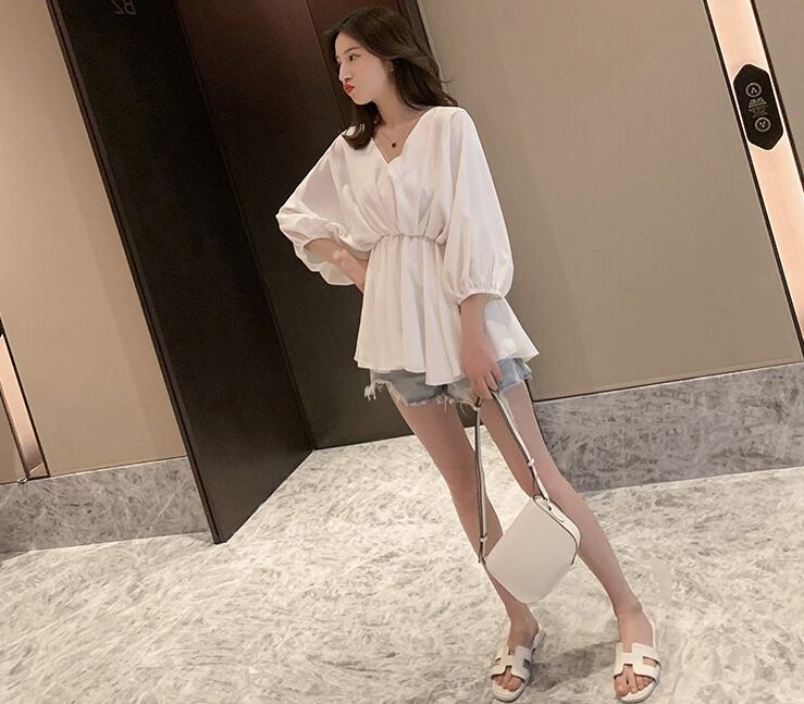 女性らしさがでるゆったりとした大人ペプラムブラウス。