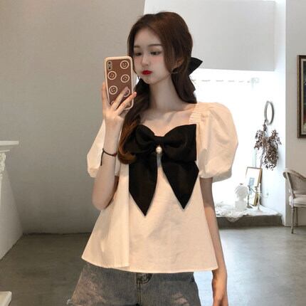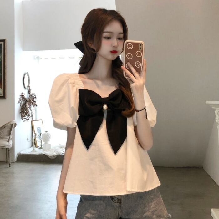半袖ブラウス トップス ブラウス 袖あり 半袖 パフスリーブ スクエアネック リボン 綿 ポリエステル かわいい 大人可愛い きれいめ シンプル カジュアル 大人 おしゃれ お洒落 レトロ 大人可愛い 大人女子 こなれ感 キュート ガーリー 個性的 主役級 存在感 抜け感 無地 春 夏 10代 20代 30代 レディース OL 通勤 学生 通学 デート お出かけ 女子会 休日 着回し 普段使い 重ね着 サイズ M L XL 色展開 白 ホワイト