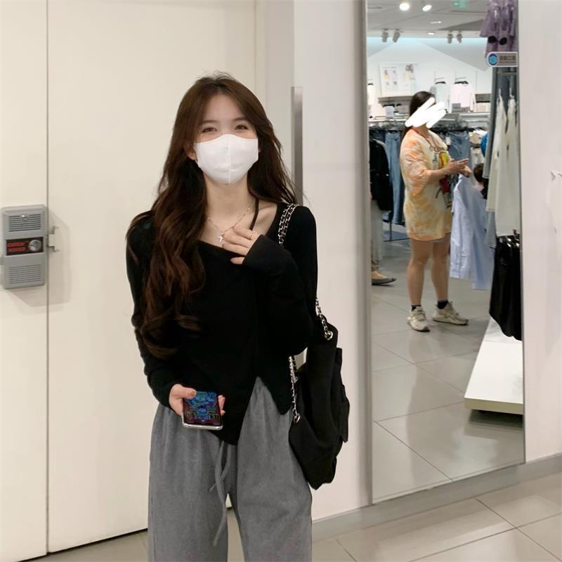 アシンメトリーネックトップス トップス カットソー プルオーバー 袖あり 長袖 Vネック アシンメトリー 綿 かわいい 大人可愛い きれいめ シンプル カジュアル 大人 おしゃれ お洒落 レトロ 大人可愛い 大人女子 こなれ感 キュート ガーリー 個性的 主役級 存在感 抜け感 無地 春 秋 10代 20代 30代 レディース 学生 通学 デート お出かけ 女子会 休日 着回し 普段使い 重ね着 サイズ S M L XL 2XL 色展開 白 ホワイト 黒 ブラック 灰色 グレー