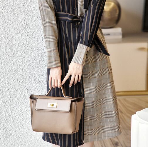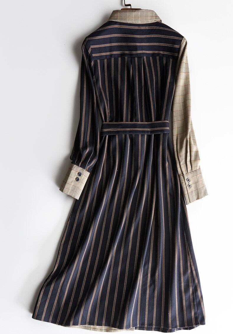 パッチワークのようで、チェック×ストライプの掛け合わせが新鮮な1枚。通勤コーデ・休日のお出かけスタイル、どちらにも着回し出来ますよ。ウエストリボン付きで、メリハリのあるスタイリングに仕上がります。年齢問わず幅広い年代の方におすすめです。