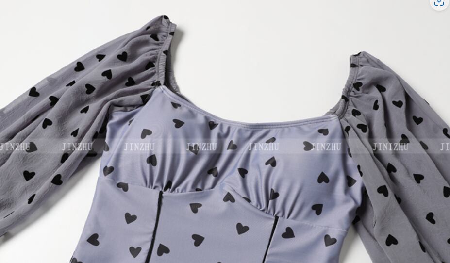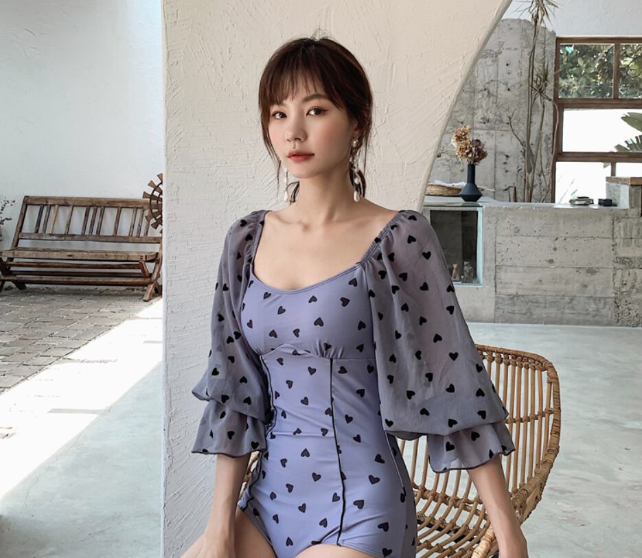 派手過ぎないハート柄とふんわり袖が大人可愛いスイムウェア。