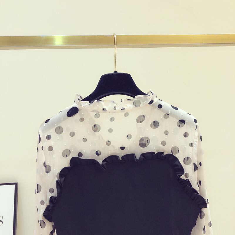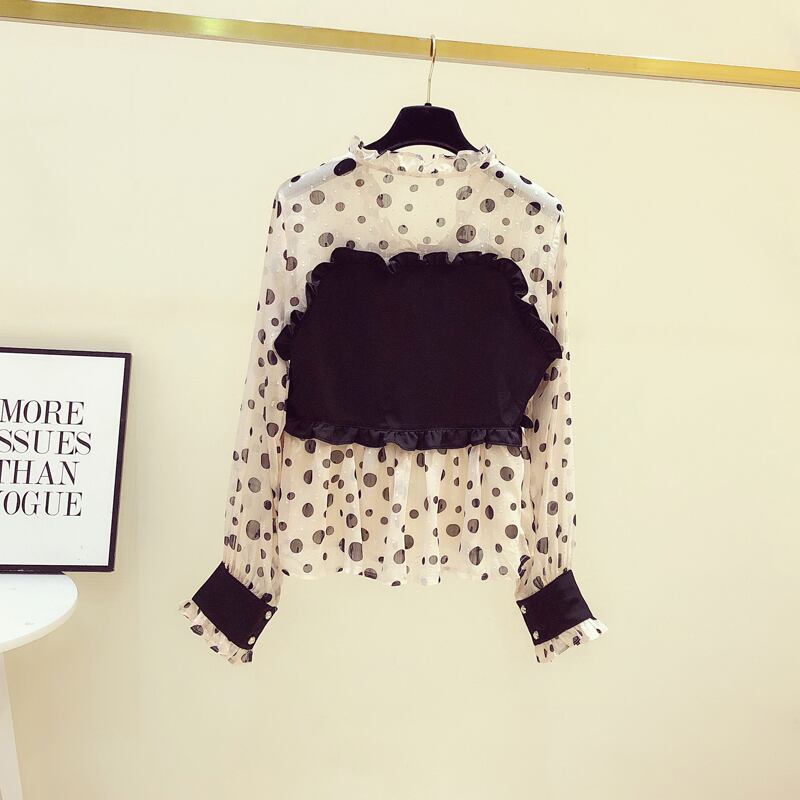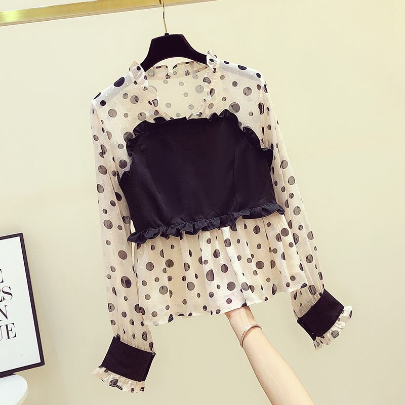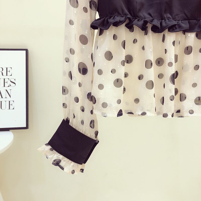 春秋ウェーブポイントVネックトップスガール長袖シフォンシャツ トップス シャツ ミディアム丈 長袖 Vネック ストレート フリル 伸縮性 大人可愛い きれいめ シンプル カジュアル 大人 お洒落 大人女子 こなれ感 ラフ ラブリー キュート ドット柄 秋 10代 20代 30代 40代 レディース 女性用 OL 通勤 学生 通学 デート お出かけ 女子会 お泊まり 休日 旅行 着回し 普段使い S M L XL アプリコット