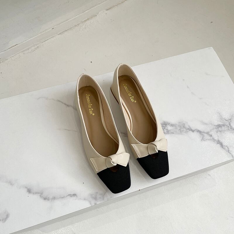 シューズ パンプス サンダル ぺたんこパンプス ローヒール スクエアトゥ リボン バイカラー 大人可愛い きれいめ シンプル 上品 おしゃれ エレガント きちんと感 女っぽ モダン 春 夏 秋 2022 20代 30代 40代 レディース ママ デート お出かけ 女子会 休日 イベント 旅行 レストラン デイリー 普段使い 格上げ モテ 新作 インスタ映え サイズ 22.5-23.0cm 23.0-23.5cm 23.5-24.0cm 24.0-24.5cm 色展開 ブラック カーキ
