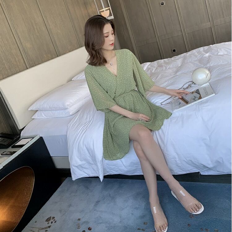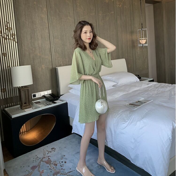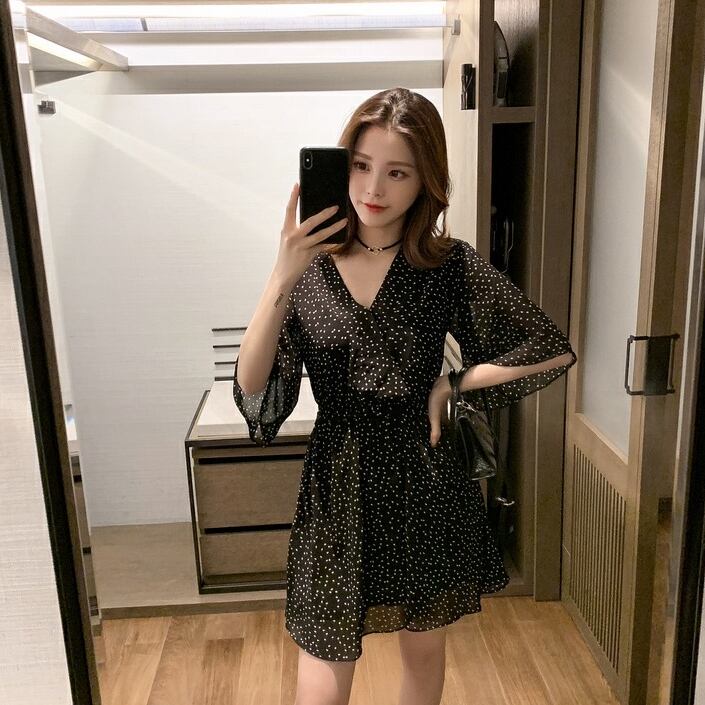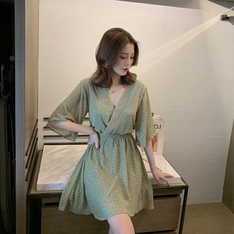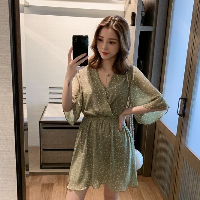 ワンピース シャツワンピース ミニ丈 袖あり 五分袖 フレアスリーブ Vネック フレア Aライン シフォン ウエストマーク ハイウエスト 薄手 かわいい 大人可愛い きれいめ カジュアル おしゃれ レトロ 大人女子 こなれ感 ラブリー キュート ガーリー エレガント 存在感 とろみ感 ドット柄 春 夏 2022 10代 20代 30代 レディース デート お出かけ 女子会 休日 イベント リゾート 旅行 海 プール 着回し 普段使い オルチャン 楽ちん モテ 美脚 脚長 新作 インスタ映え
