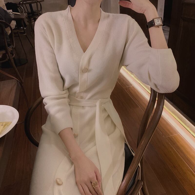 羽織りにもワンピースにも使えるロングニットカーディガン。