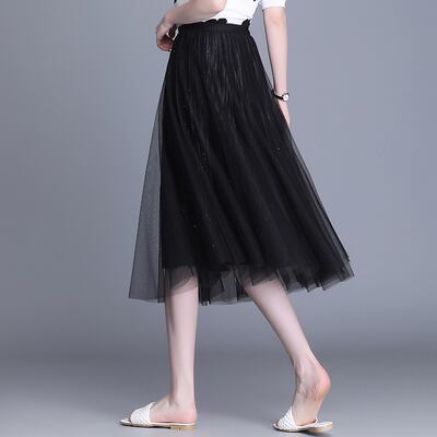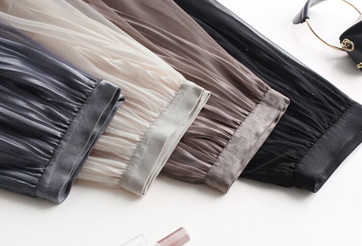トレンドのグリッターとフェミニンなチュールを重ねたよくばりなスカートです。
