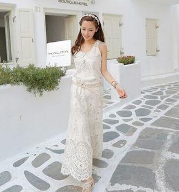 大人っぽいお上品なノースリーブワンピースです。