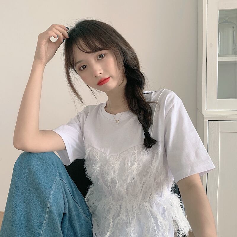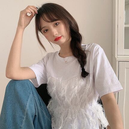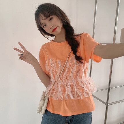 ドッキングTシャツ トップス Tシャツ 袖あり 半袖 ラウンドネック ドッキング レース ドッキング 綿 ポリエステル かわいい 大人可愛い きれいめ シンプル カジュアル 大人 上品 おしゃれ お洒落 大人可愛い 大人女子 こなれ感 キュート ガーリー 個性的 主役級 存在感 とろみ感 無地 春 夏 10代 20代 30代 レディース 学生 通学 デート お出かけ 女子会 休日 着回し 普段使い 重ね着 サイズ M L XL 色展開 白 ホワイト 青 ブルー オレンジ