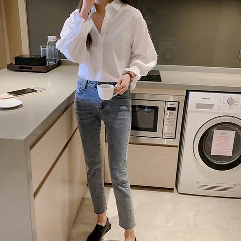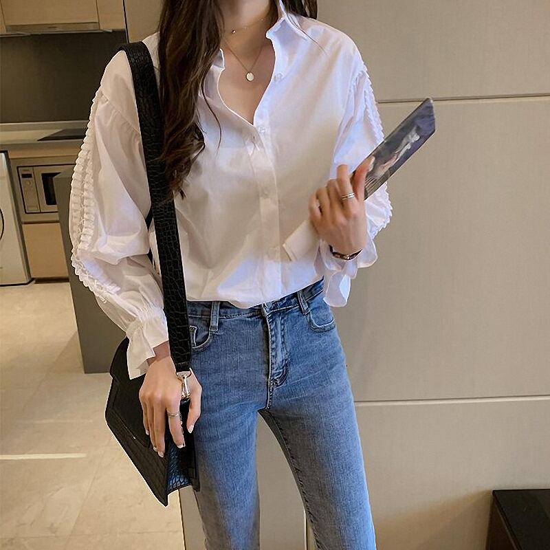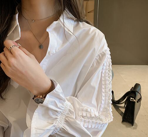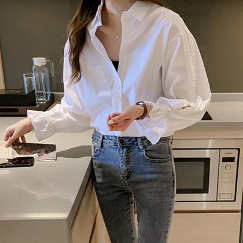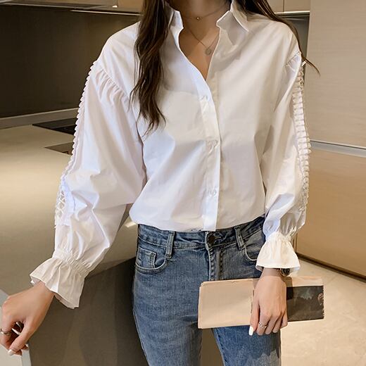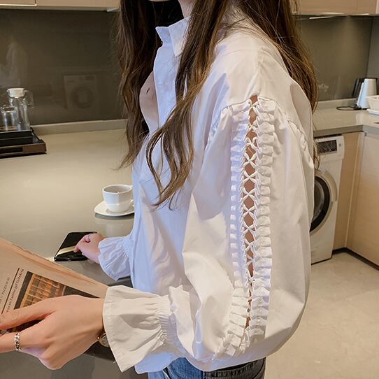 トップス シャツ 白シャツ ミディアム丈 袖あり 長袖 フレアスリーブ 襟付き ポロカラー ストレート 編み上げ かわいい 大人可愛い シンプル カジュアル 大人 おしゃれ 大人女子 こなれ感 キュート エレガント 存在感 無地 秋 冬 2022 20代 30代 40代 レディース デート お出かけ 女子会 休日 リゾート ホテル レストラン 着回し 普段使い 重ね着 韓国系 ファッション モテ 新作 インスタ映え サイズ M L XL 2XL 3XL 4XL 色展開 ホワイト