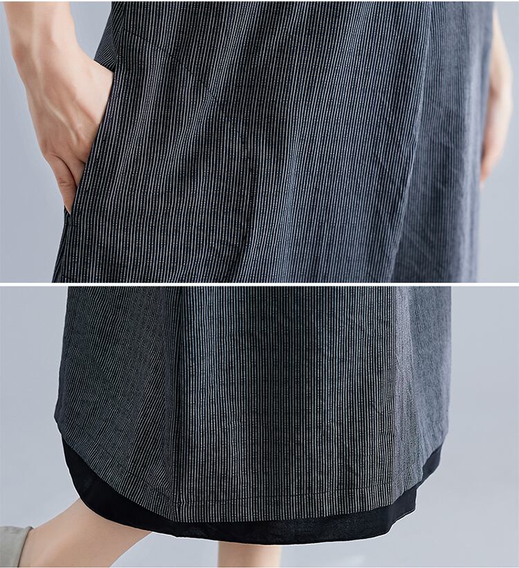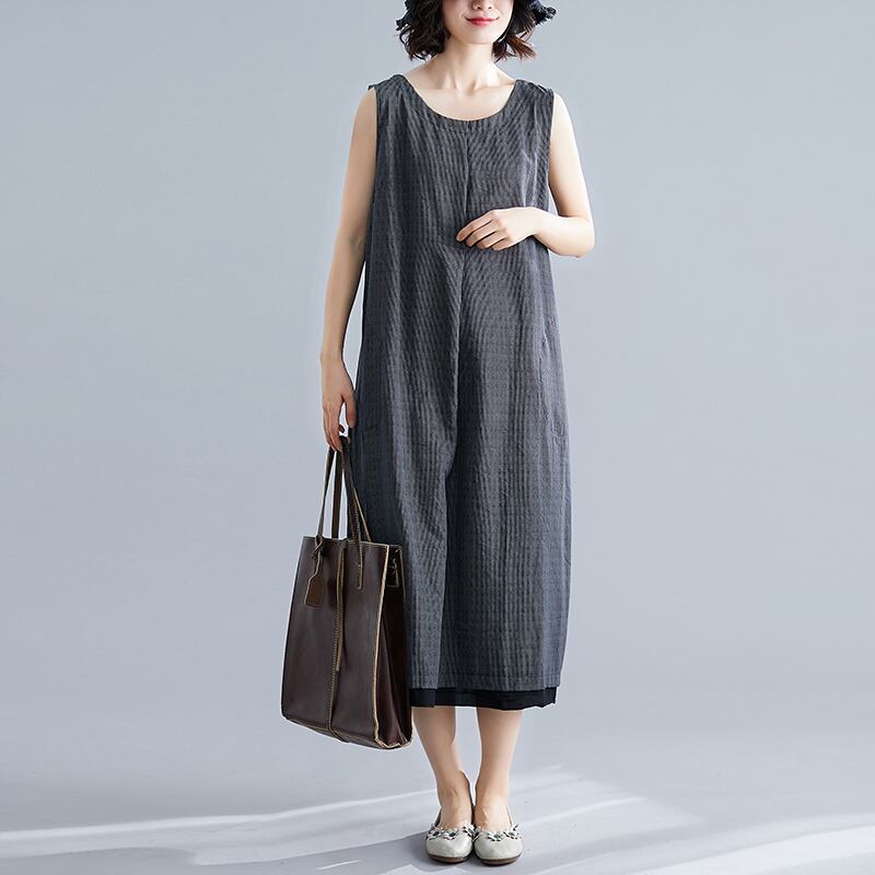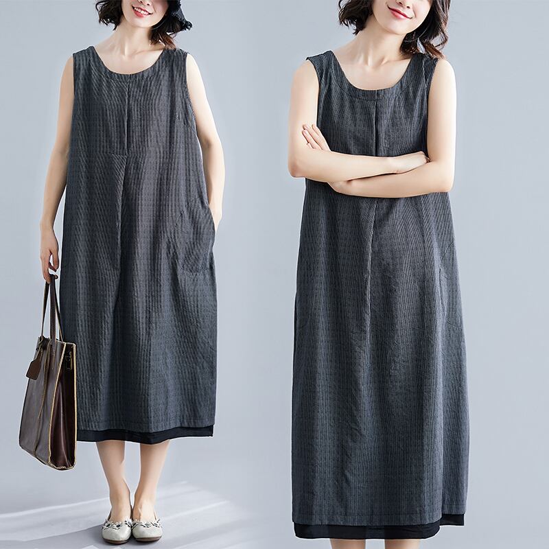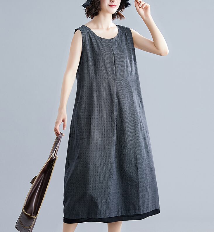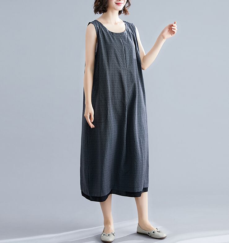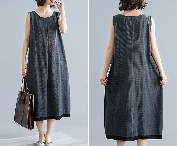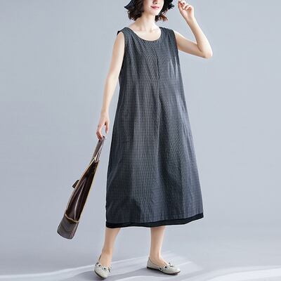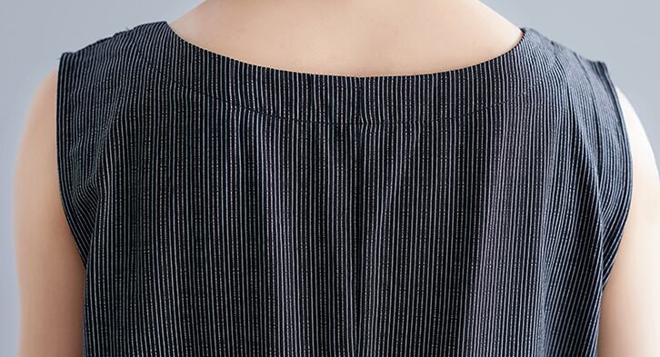 ゆったりと開いたUネックに、ノースリーブのワンピースは、着心地はとてもゆったり。