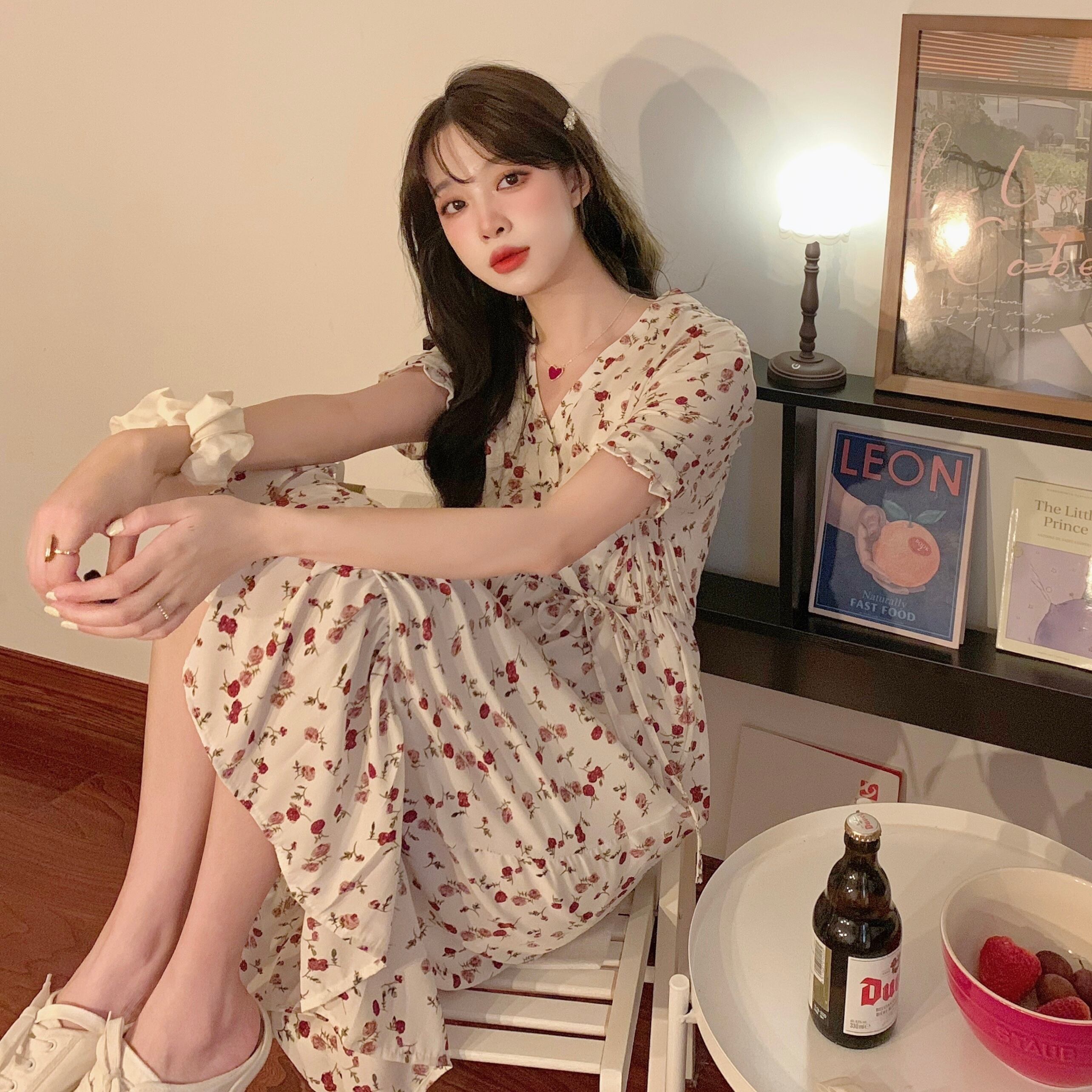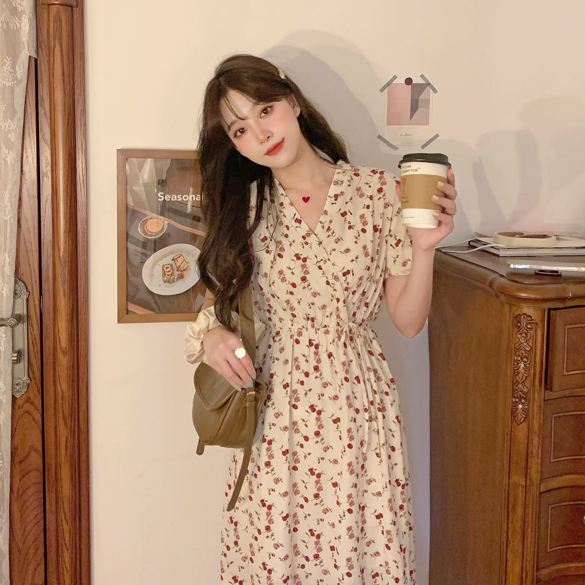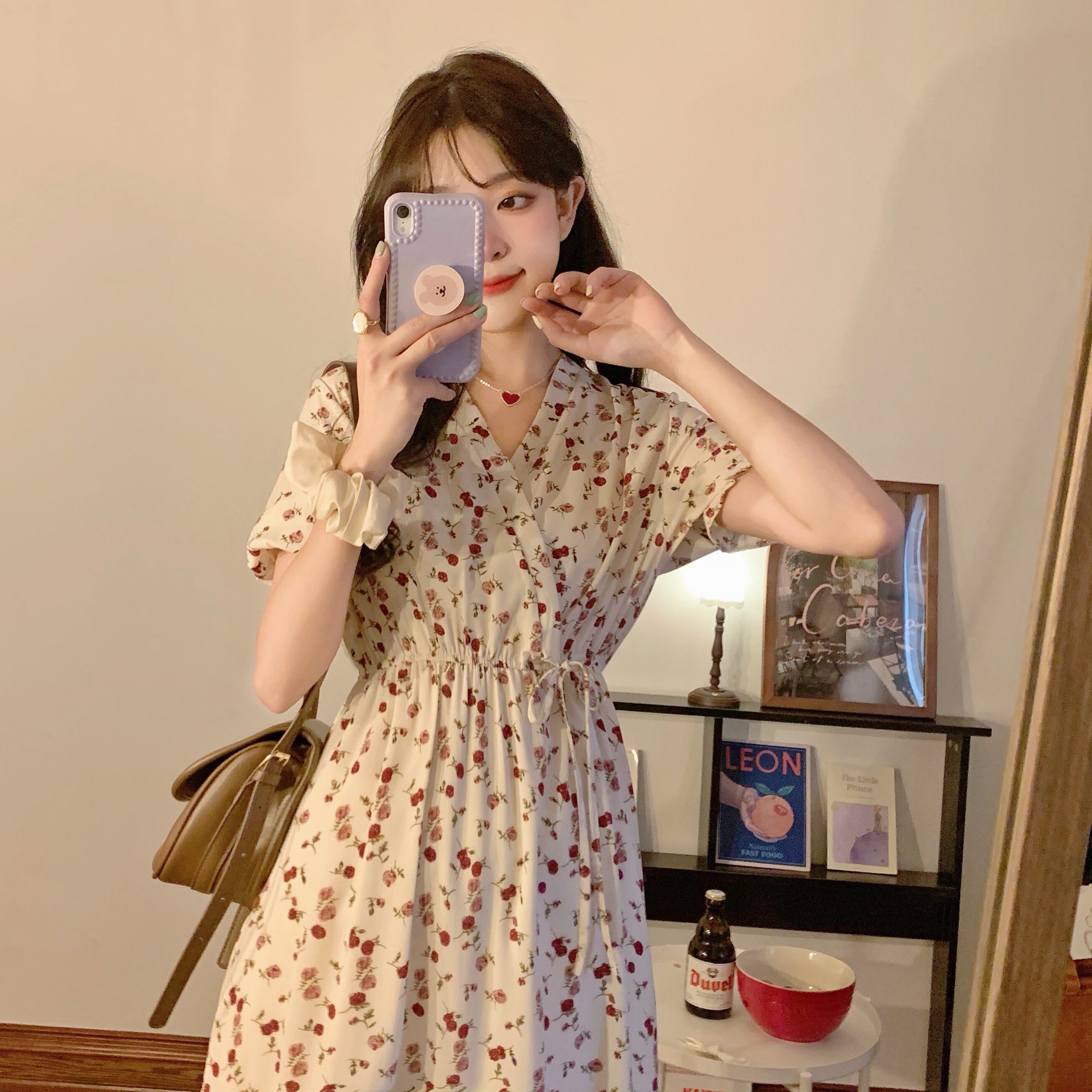 ワンピース シャツワンピース ロング丈 袖あり 半袖 Vネック Aライン ウエストマーク ウエストリボン ハイウエスト かわいい 大人可愛い きれいめ カジュアル 上品 おしゃれ こなれ感 ラブリー キュート ガーリー 主役級 小花柄 春 夏 2022 10代 20代 レディース 学生 デート お出かけ 女子会 休日 イベント リゾート 旅行 レストラン 着回し 普段使い オルチャン 楽ちん モテ 新作 トレンド インスタ映え サイズ M L XL 2XL 3XL 4XL 色展開 クリームベージュ