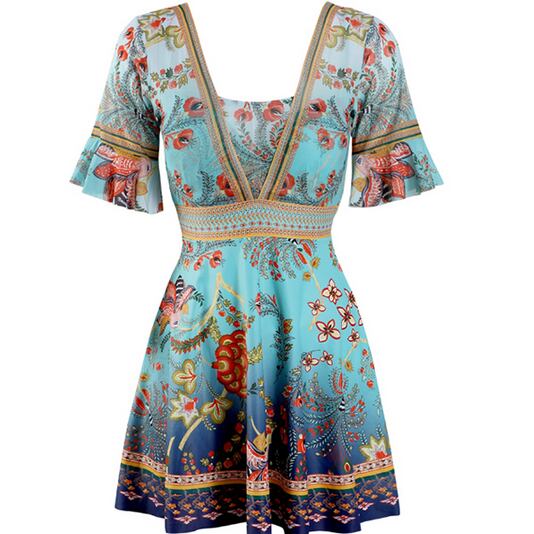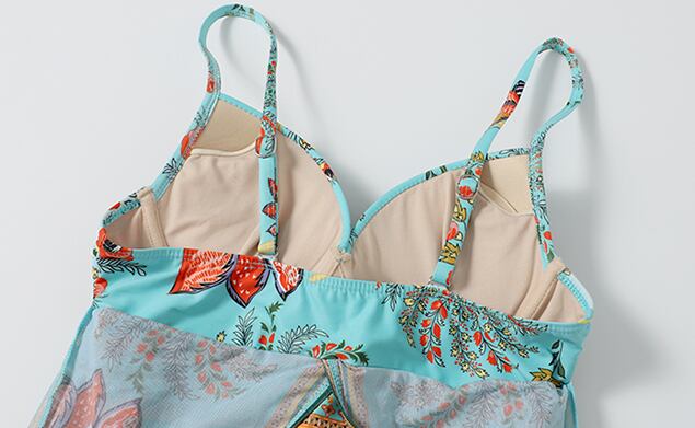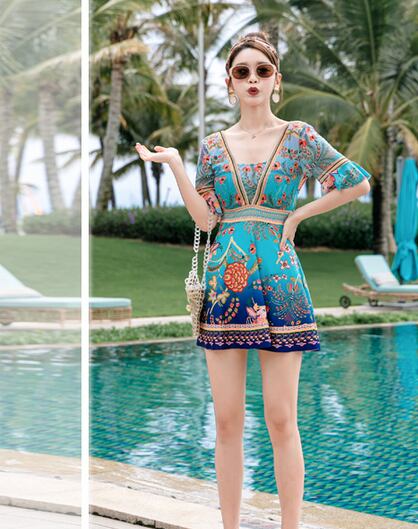 袖ありワンピースで、体型カバー効果がばっちりです。アジアンテイストな雰囲気漂う、大人っぽさが魅力的。胸元の谷間を綺麗に見せてくれますよ。プールやビーチ、温泉にも着られるので、1枚あれば着回しが効くアイテムです。