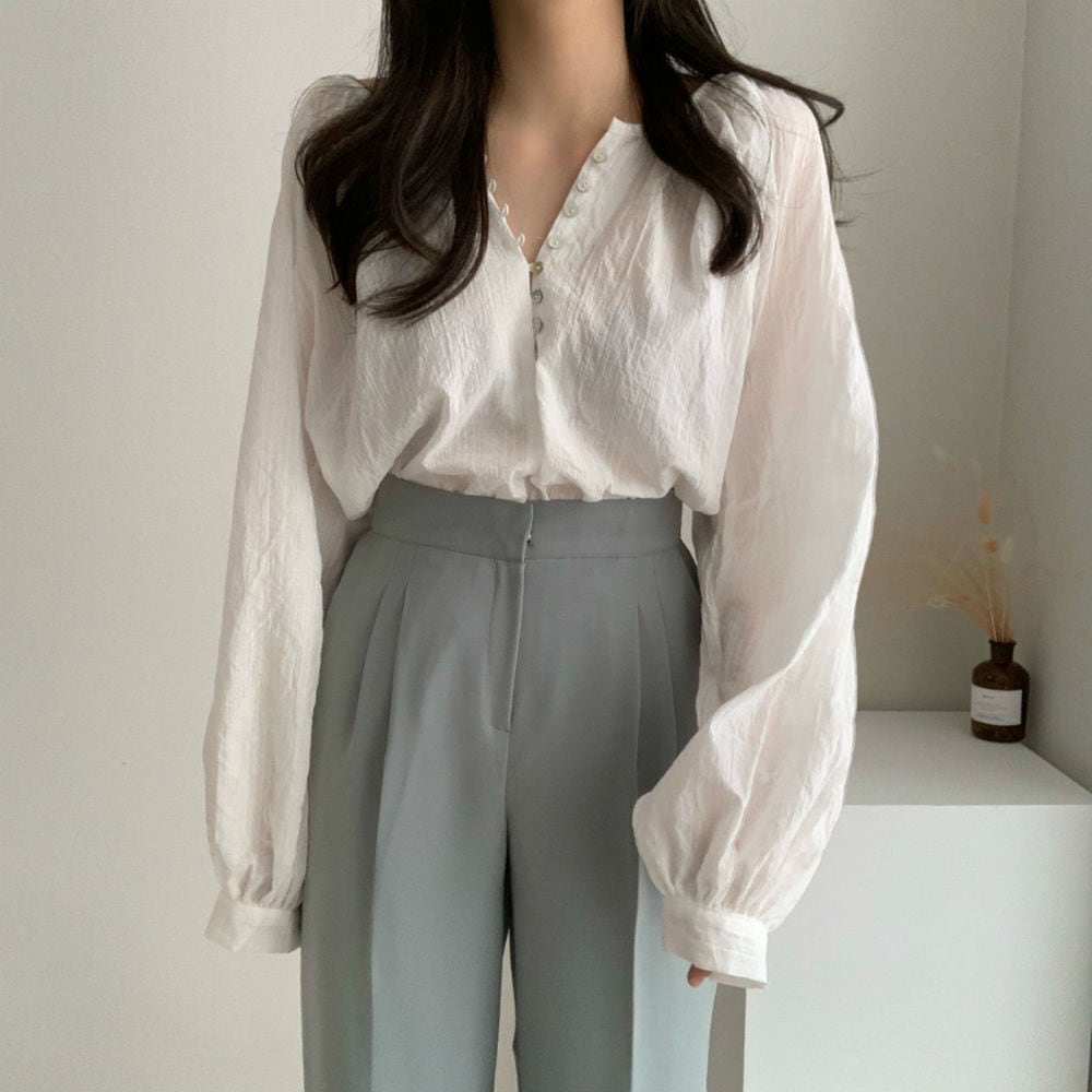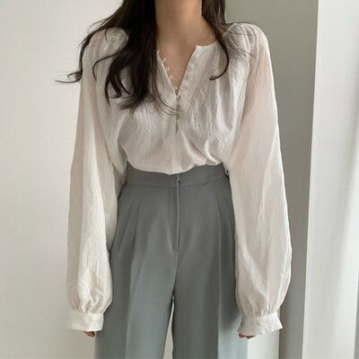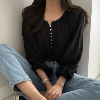 長袖ブラウス トップス ブラウス 袖あり 長袖 ラウンドネック シフォン 透け感 綿 かわいい 大人可愛い きれいめ シンプル カジュアル 大人 上品 おしゃれ お洒落 レトロ 大人可愛い 大人女子 こなれ感 ラフ キュート ルーズ 個性的 主役級 存在感 無地 春 秋 10代 20代 30代 レディース OL 通勤 学生 通学 デート お出かけ 公園デビュー 女子会 休日 着回し 普段使い 重ね着 サイズ S M L 色展開 白 ホワイト 黒 ブラック