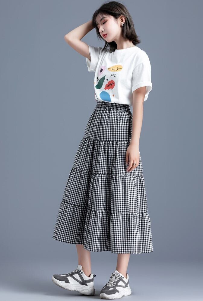 黒と白の格子縞のスカート女性夏春秋a字スカートプリーツ中長 スカート プリーツスカート フレアスカート ミモレ丈 Aライン プリーツ ウエストマーク ハイウエスト 大人可愛い きれいめ シンプル カジュアル おしゃれ レトロ こなれ感 ラフ キュート 格子柄 春 夏 秋 10代 20代 30代 40代 レディース 女性用 OL 通勤 学生 通学 デート お出かけ お泊まり 休日 旅行 海 高原 ガーデン 着回し 普段使い XS S M L XL 2XL ホワイト ブラック