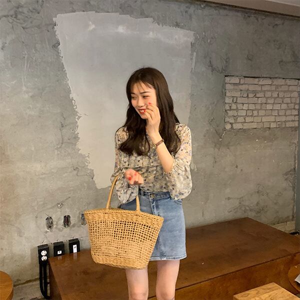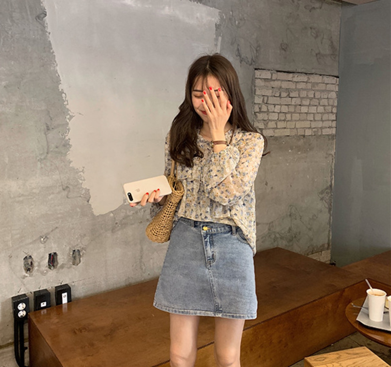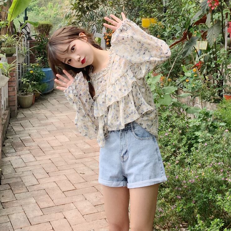 花柄ブラウス トップス ブラウス 袖あり 長袖 ハイネック シフォン フリル 透け感 かわいい 大人可愛い きれいめ シンプル カジュアル 大人 上品 おしゃれ お洒落 レトロ 大人可愛い 大人女子 こなれ感 ラフ キュート ルーズ 主役級 存在感 柄 花柄 小花柄 春 秋 10代 20代 30代 レディース OL 通勤 学生 通学 デート お出かけ 公園デビュー 女子会 休日 着回し 普段使い 重ね着 色展開 アプリコット