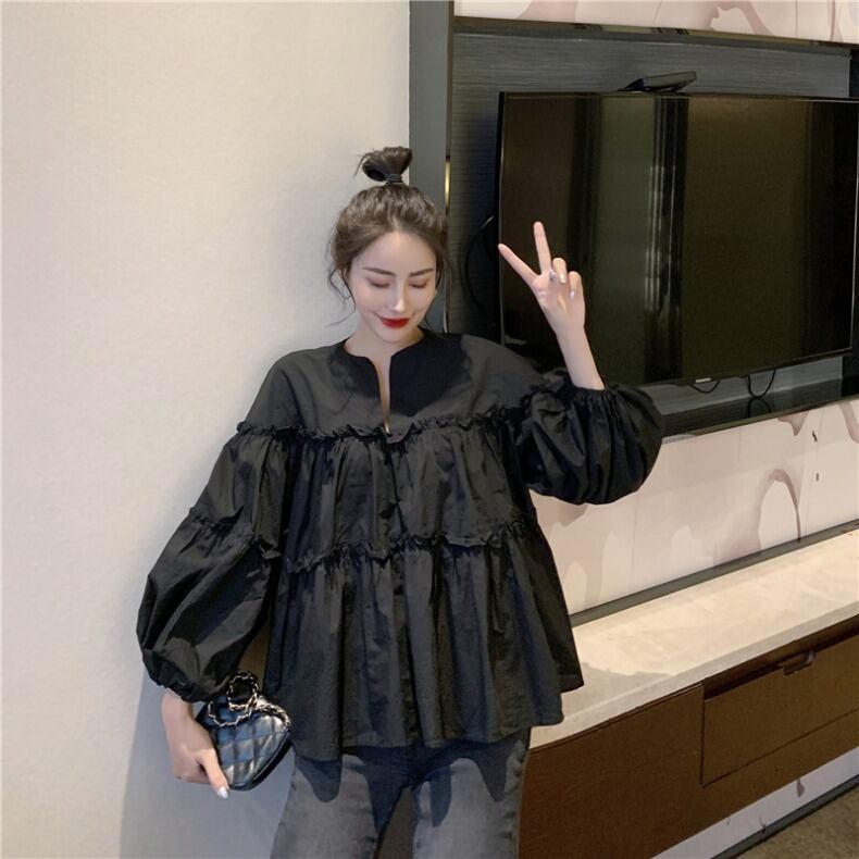 ティアードブラウス トップス ブラウス 袖あり 長袖 Vネック フレア フリル ポリエステル かわいい 大人可愛い きれいめ シンプル カジュアル 大人 上品 おしゃれ お洒落 レトロ 大人可愛い 大人女子 こなれ感 ラフ キュート ルーズ 主役級 存在感 無地 春 秋 10代 20代 30代 レディース OL 通勤 学生 通学 デート お出かけ 公園デビュー 女子会 休日 着回し 普段使い 重ね着 色展開 黒 ブラック