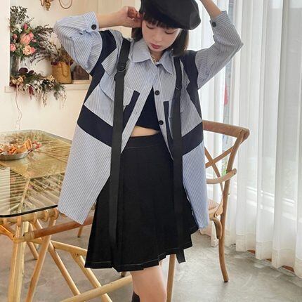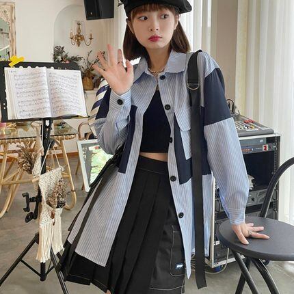 長袖シャツ トップス シャツ 袖あり 長袖 襟付き ポケット 前開き かわいい 大人可愛い きれいめ シンプル カジュアル 大人 上品 おしゃれ お洒落 レトロ 大人可愛い 大人女子 こなれ感 ラフ キュート ルーズ 個性的 主役級 存在感 柄 ストライプ 春 秋 10代 20代 30代 レディース 学生 通学 デート お出かけ 女子会 休日 着回し 普段使い 重ね着 韓国系 オルチャン サイズ M L XL 2XL 色展開 青 ブルー
