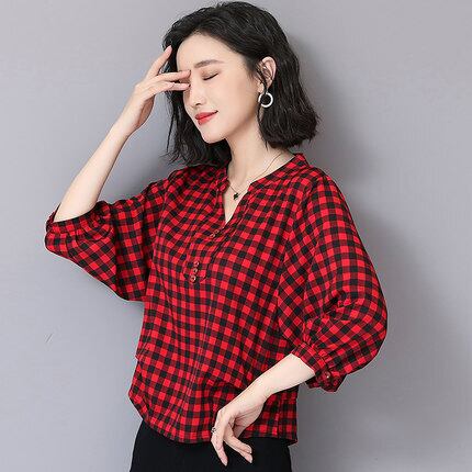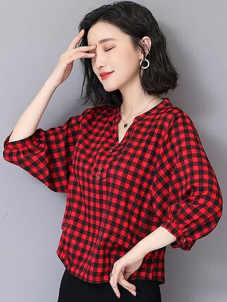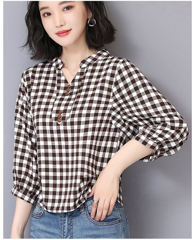 ギンガムチェック柄ブラウス トップス シャツ ブラウス 袖あり 7分袖 七分袖 Vネック スタンドカラー かわいい 大人可愛い きれいめ シンプル カジュアル 大人 上品 おしゃれ お洒落 レトロ 大人可愛い 大人女子 こなれ感 ラフ キュート ルーズ 個性的 主役級 存在感 柄 チェック柄 春 夏 秋 10代 20代 30代 レディース OL 通勤 学生 通学 デート お出かけ 女子会 休日 着回し 普段使い 重ね着 韓国系 オルチャン サイズ L XL 2XL 3XL 4XL 色展開 黒 ブラック