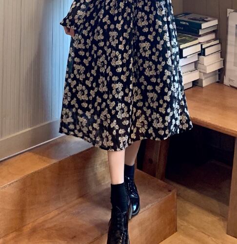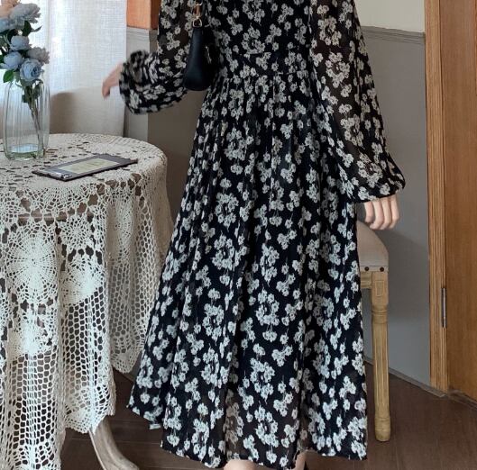 お上品な花柄ロングワンピースです。