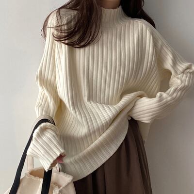 リブニット トップス ニットソー セーター 袖あり 長袖 ハイネック リブニット かわいい 大人可愛い きれいめ シンプル カジュアル 大人 上品 おしゃれ お洒落 レトロ 大人可愛い 大人女子 こなれ感 ラフ キュート ルーズ 個性的 主役級 存在感 無地 秋 冬 10代 20代 30代 レディース OL 通勤 学生 通学 デート お出かけ 女子会 休日 着回し 普段使い 重ね着 韓国系 オルチャン サイズ S M L XL 2XL 3XL 4XL 5XL 色展開 白 ホワイト ブラウン