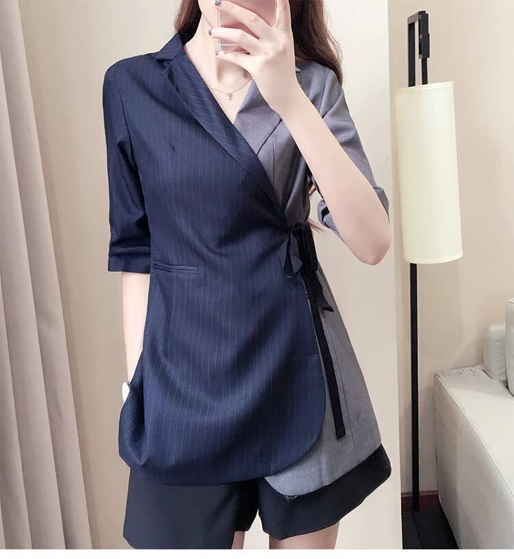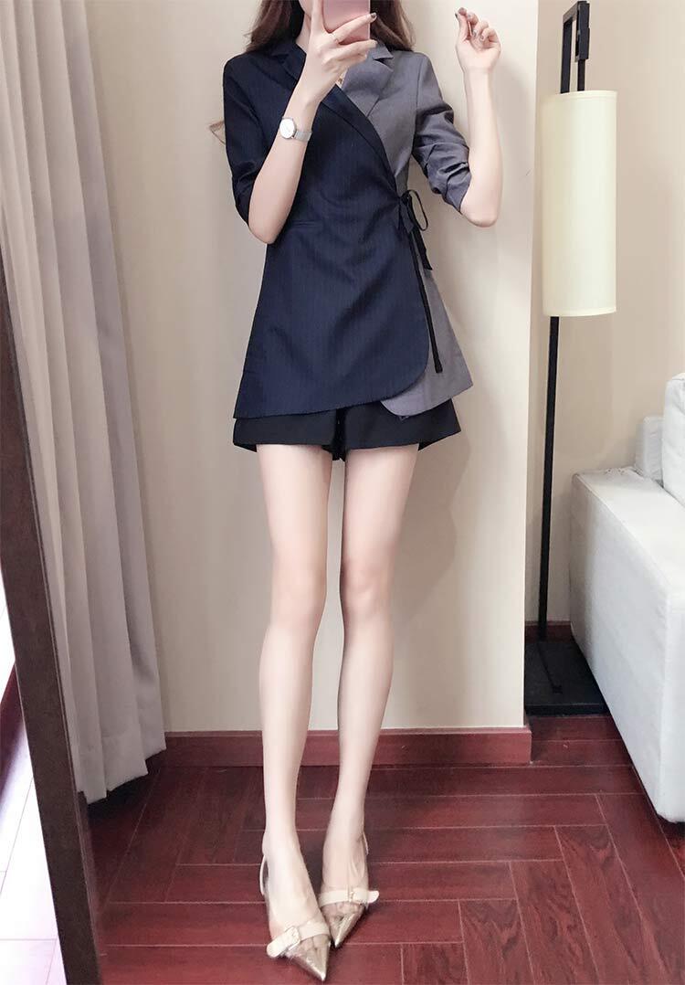 仁平のような着こなしのスーツの上着とショートパンツのセット