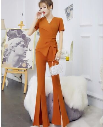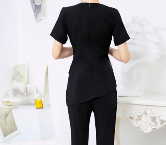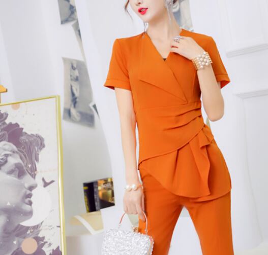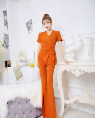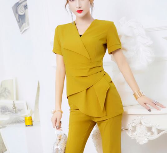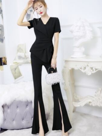 大人っぽいタイトな半袖&パンツのセットアップです。